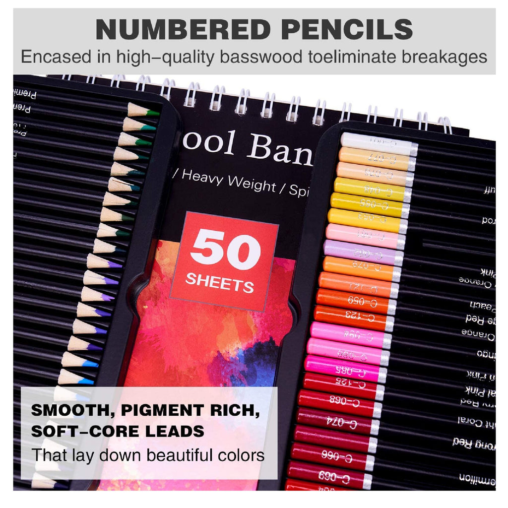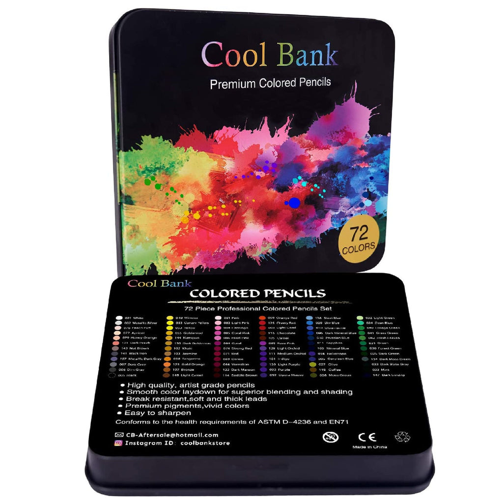 - NEW AND IMPROVED ARTIST QUALITY COLORED PENCILS - Comes with 72 vibrant, artist quality colored pencils with 2 x 50 page drawing pads (8.3"x11.7").-Each pencil is labeled and numbered for easy color identification, 72 shades give you unlimited creative freedom.- VIBRANT COLOR: Comes with 72 different colored pencils in a tin box.-Their colored pencils have soft, break-resistant cores made of lightfast pigment that won't fade over time. 72 shades give you unlimited creative freedom.- QUALITY PENCIL IN A STURDY METAL CASE: Each adult coloring pencil is made from durable basswood with a strong core, carefully packaged in an impressive presentation tin box.- The thick lead of our pre-sharpened oil-based art pencils allows for excellent blending, layering and shading with each other and with other top brands.- LUXURY 'SOFT SERIES' for blending, shading and layering.-These expertly colored pencils glide smoothly across paper, blend beautifully, and layer effortlessly.-You will be surprised by its rich and deep coverage.- Our gorgeous colors and design tools are neatly organized and arranged in a tin box so you can create art wherever you go.