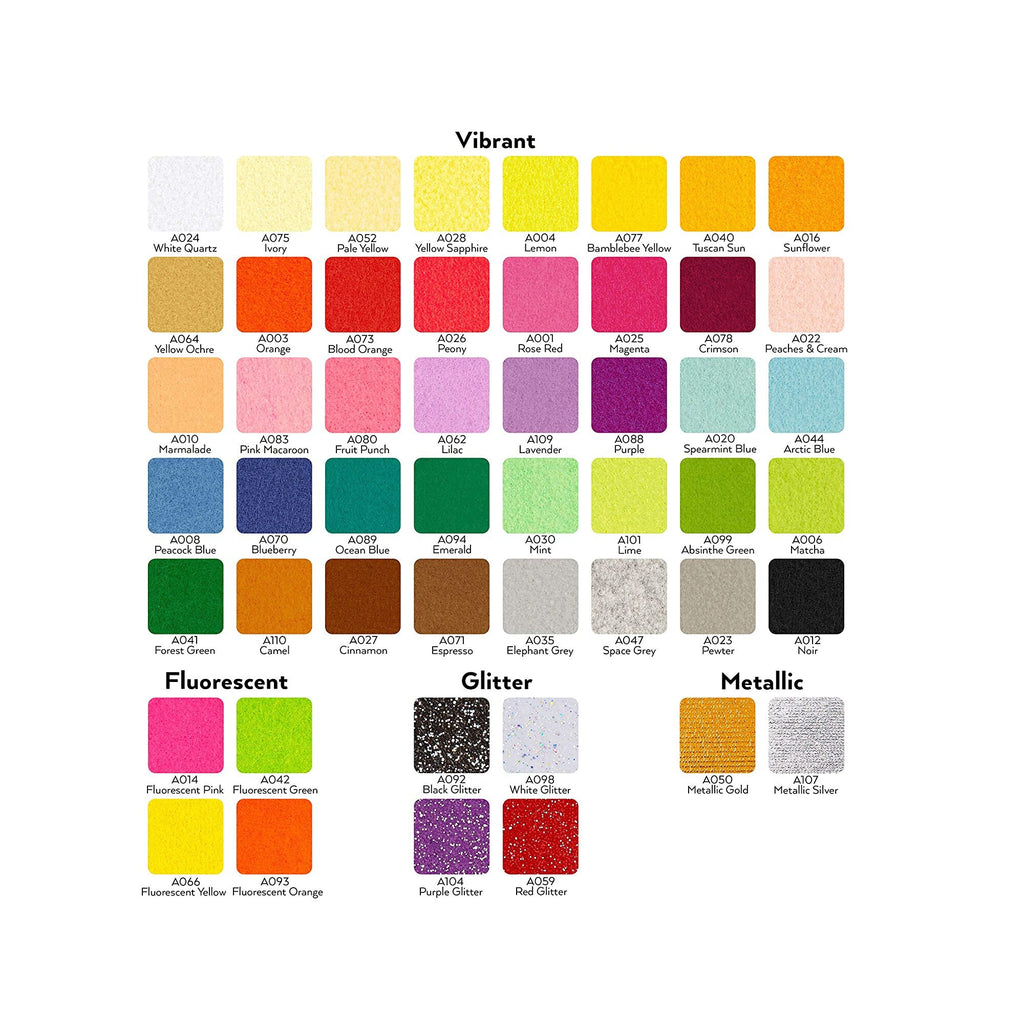 -From rose red and fluorescent green to metallic gold and purple glitter, your fabric sheets come in diverse, rare colors for you to unleash your crafty side!