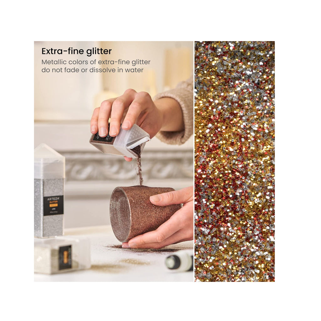 12 Unique Assorted Glitter Colors for Year-Round CraftingOur extra fine glitter for projects can be used as glitter for epoxy resin crafts. It can also be applied on construction paper, glass, and canvas. We’ve included a variety of colors in this set that you won’t be able to find from other brands. These unique colors can be used year-round for all of your holiday arts and crafts projects.What We Love About Our Fine Metallic Glitter Set:— 6 unique colors.