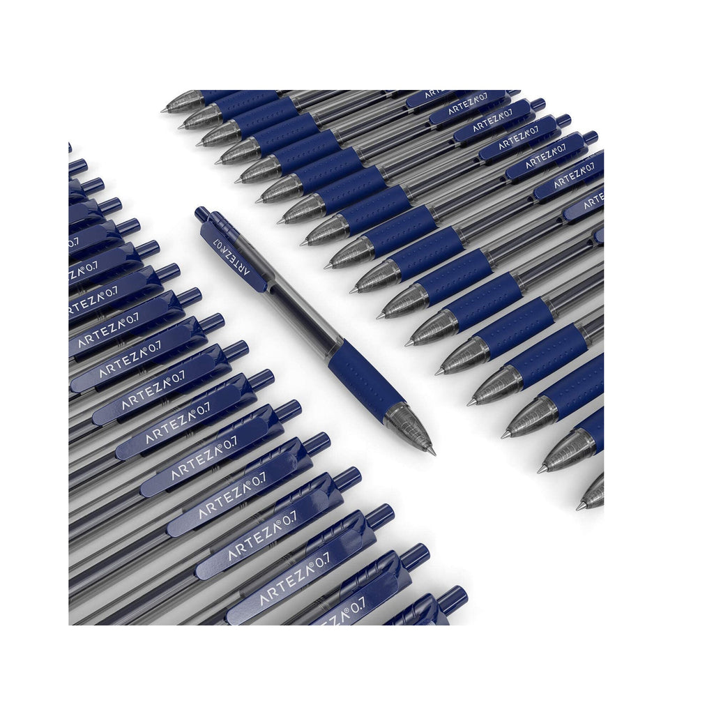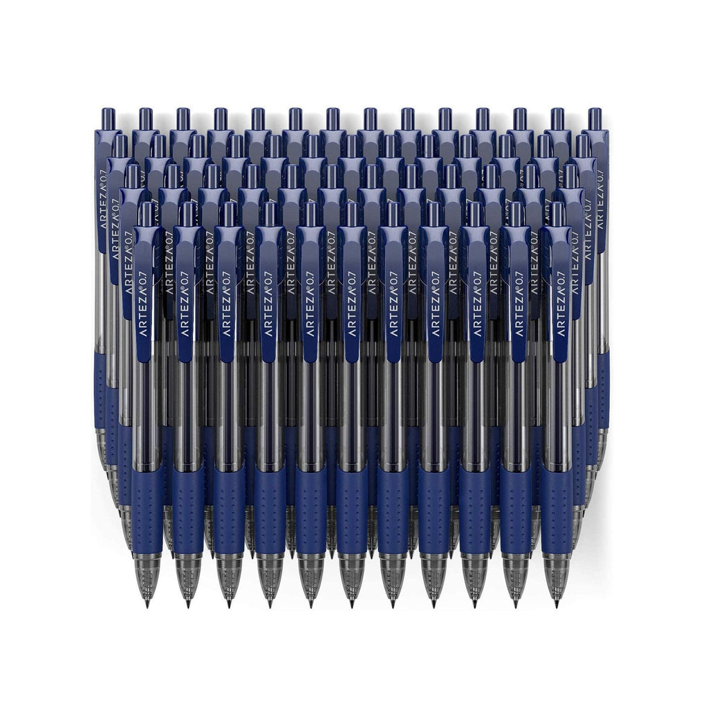 Whatever the task, gel pens keep your ideas (and ink) flowing. With this convenient set of 50 blue retractable pens, you'll experience premium ink flow on the page, whether it's taking notes at school, sketching in your favorite pad, or writing out your novella by hand. These gel ink pens are long-lasting, bold, and dry fast so you never have to worry about smearing your work.Premium, Long-Lasting & Multi-Use This premium gel pen pack is ideal for any of your writing or creative endeavors. With an extra comfortable ergonomic grip, see-through barrel and durable pocket clip for easy portability, these retractable ink gel pens feature 0.7mm stainless steel tips that write with medium, precise lines that won’t fade.Super Smooth Writing Experience Click gel pens combine both pigment and gel inks for a piece-of-mind writing experience that stands the test of time. The high-quality liquid gel ink dries so fast even lefties love it - no more annoying streaks ruining your work as with an ordinary ballpoint pen! The latex-free rubber grip offers maximum comfort and control, so your lines are where you want them every time.-Bulk Set of Retractable Gel Pens: Never be without your favorite pen again with this large set of 50 blue gel pens. Whether you're at school, work, or in the office, you’ll appreciate that these are comfortable to hold, write evenly, and dry fast.-Smoother Than Ball Point Pens: Get precise, clean lines of rich, full ink on every page. These fine point gel pens flow free and write more smoothly than traditional pens.