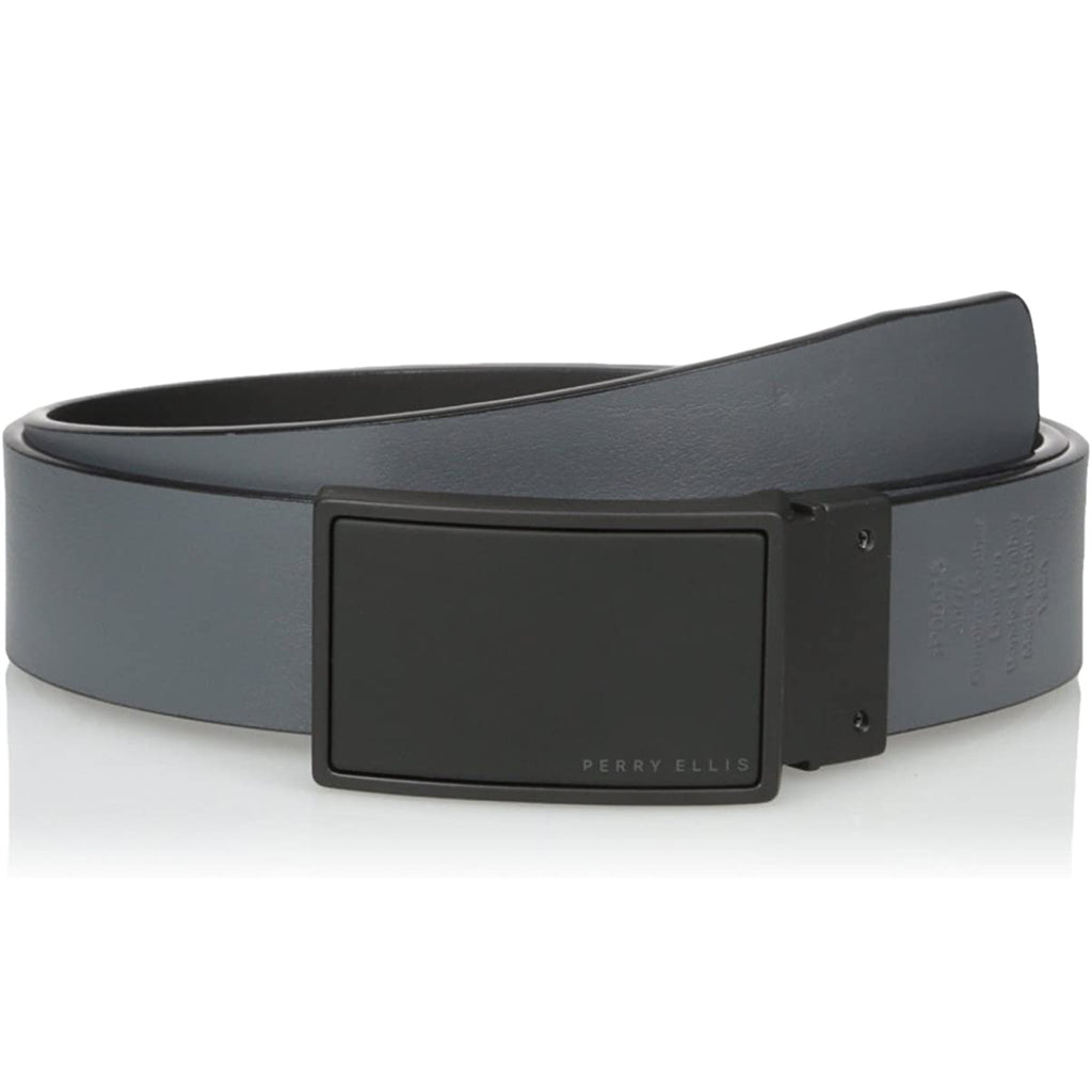 Perry Ellis Men's Coated Plaque Belt | Black/Grey