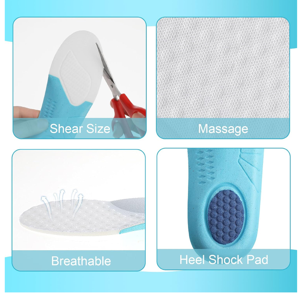 -Multi-person Adaptation: Kids insoles for sneakers are designed to fit a variety of shoe types, including spikes, sneakers, boots, etc. Foam shoe inserts can be easily trimmed to match your child's shoe size to ensure an easy fit.