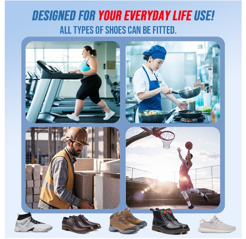 -MORE SATBLE & SECURE STEPS - 240 LBS HEAVY DUTY ARCH SUPPORT INSOLES FOR STANDING EASILY ALL DAY: The biomechanically designed shoe inserts for women men are 3CM high and fit your arch perfectly, wrap precisely around your heel to provide strong body balance support. Whether you're an athlete or an everyday professional, plantar fasciitis relief orthotics designed for over 240lbs offer targeted arch support that reduces foot and leg fatigue, prevents injuries, and reduces impact with every step.