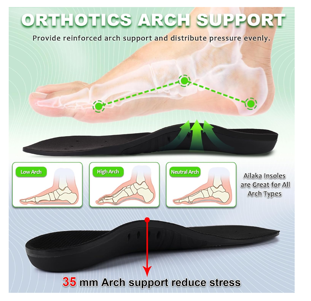 Ailaka Orthotic Cushion Arch Support Shoe Insoles for Men & Women,