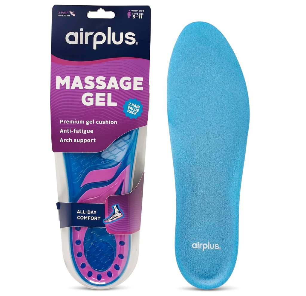Airplus Massage Gel Insoles, Premium Gel Cushioning with Heel and Ball-of-Foot, Arch Support Insoles,