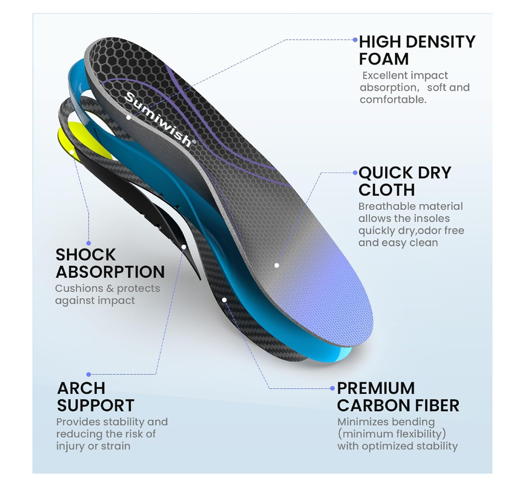 Carbon Fiber Insole for Men & Women - Sumiwish(1 Pair) High Arch & Rigid Support Shoe Insert