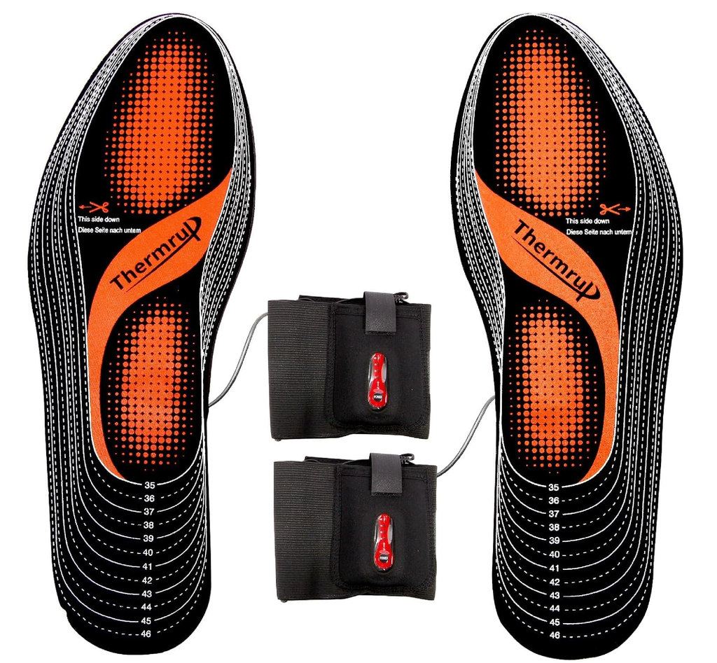 No more cold feet. Premium-quality heated insoles with rubber heating element, large heating area, deep and even heat distribution.The 18 cm long heating surface warms the foot from the heel to the toe.