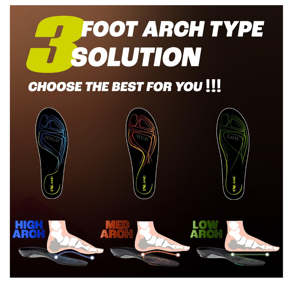 CUSTOM ARCH SUPPORT INSERTS: Our insoles cater to all arch types - high, medium, and low. Find the perfect fit and support for your unique foot profile.