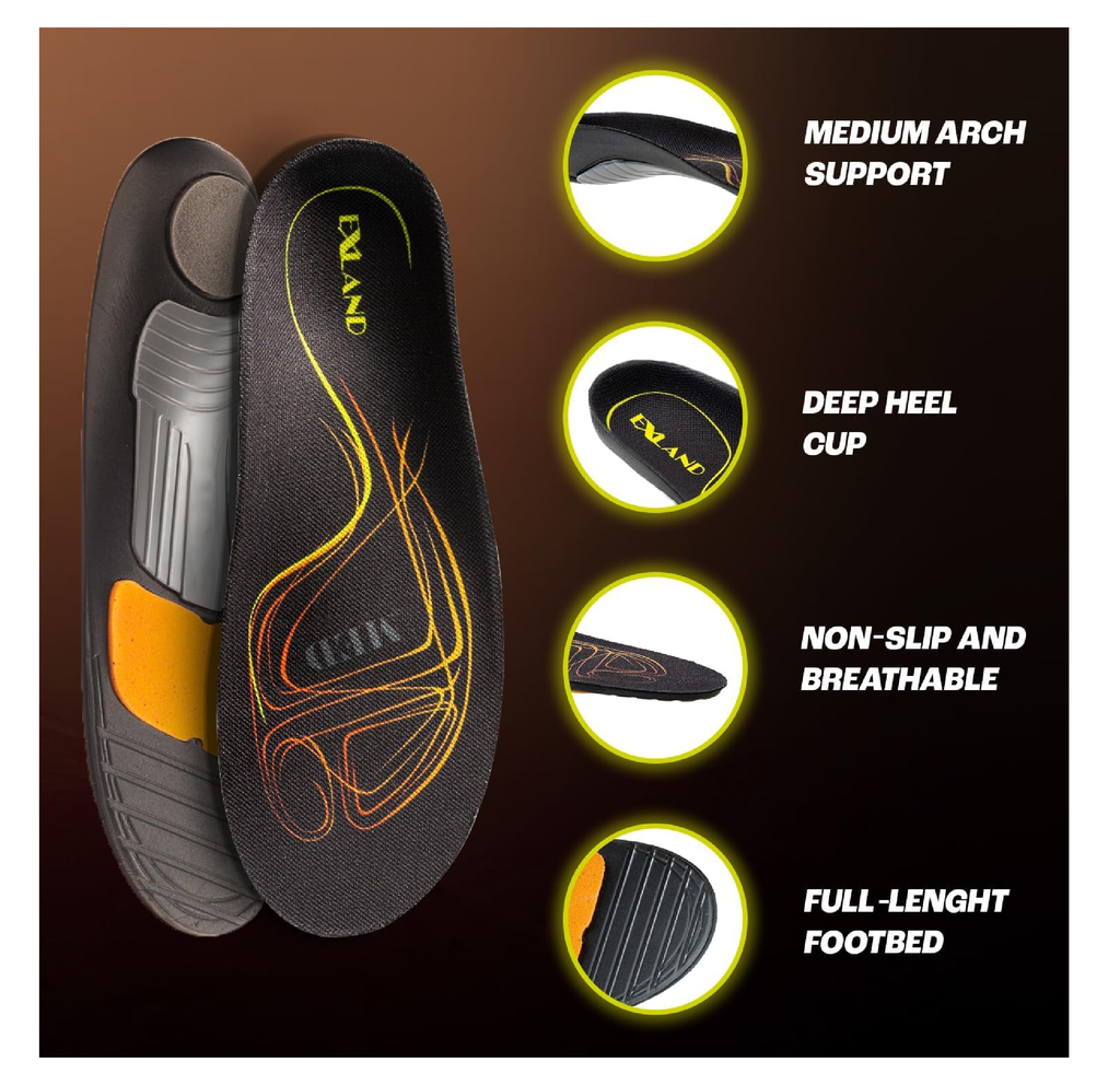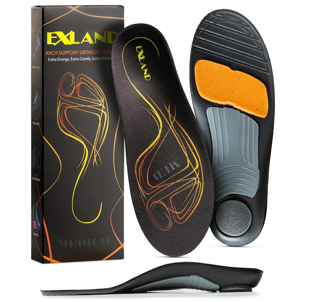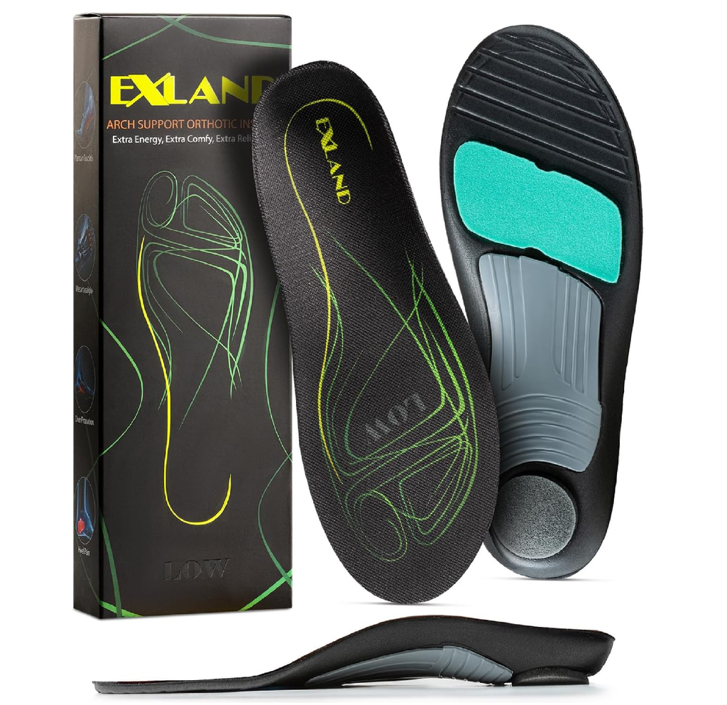 Exland Plantar Fasciitis Insoles - Low Arch Support for Flat Feet - Pain Relief