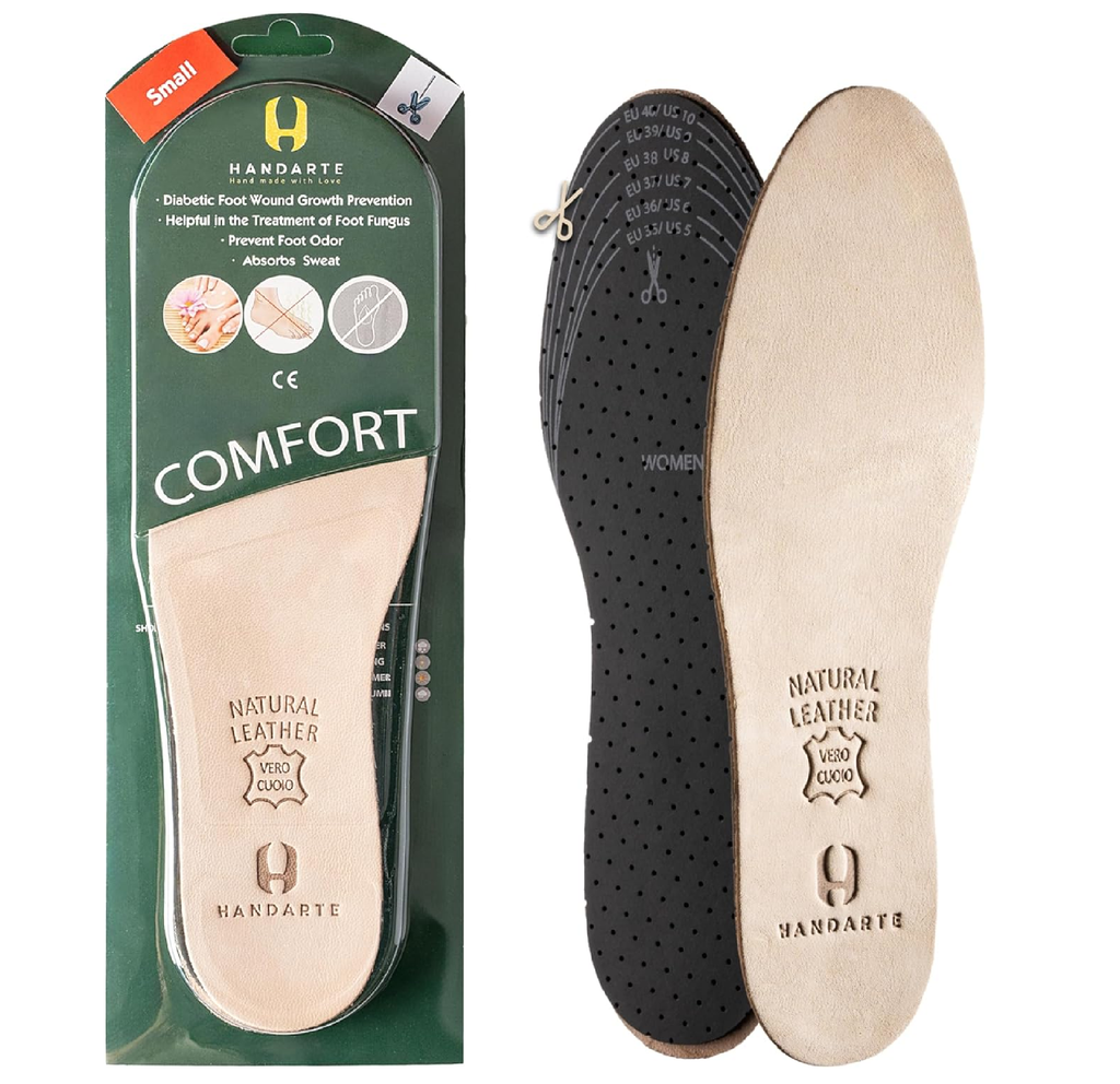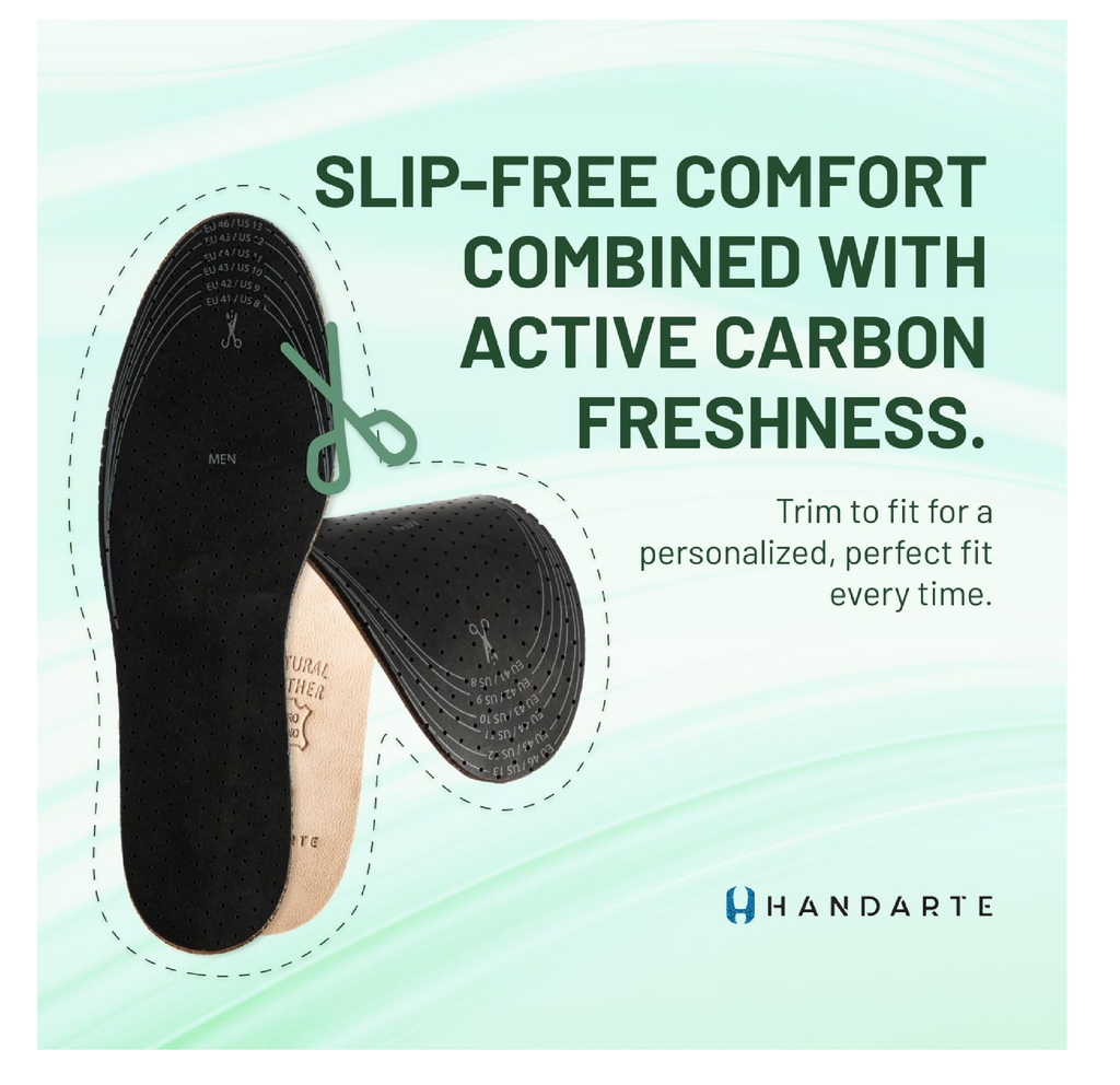 HANDARTE Leather Anti Odor Insoles | Cuttable Odor Eaters Insoles Women | Shoe Deodorizer Thin Insert - Odor Eliminator for Shoes