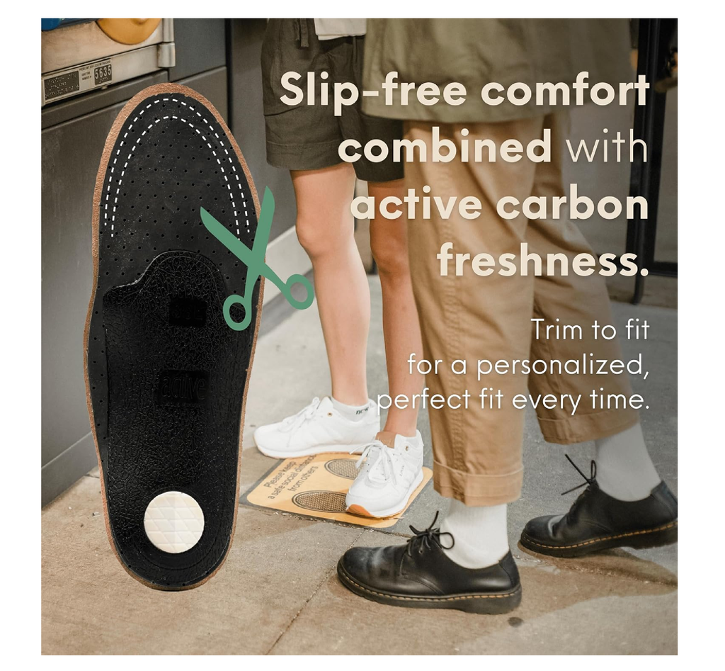 ODOR CONTROL WITH ANTI-SLIP BASE: Built with activated carbon in the latex foam, our orthopedic insoles for men neutralize odors and control moisture. The anti-slip design guarantees they stay securely in place, keeping feet fresh throughout the day.
