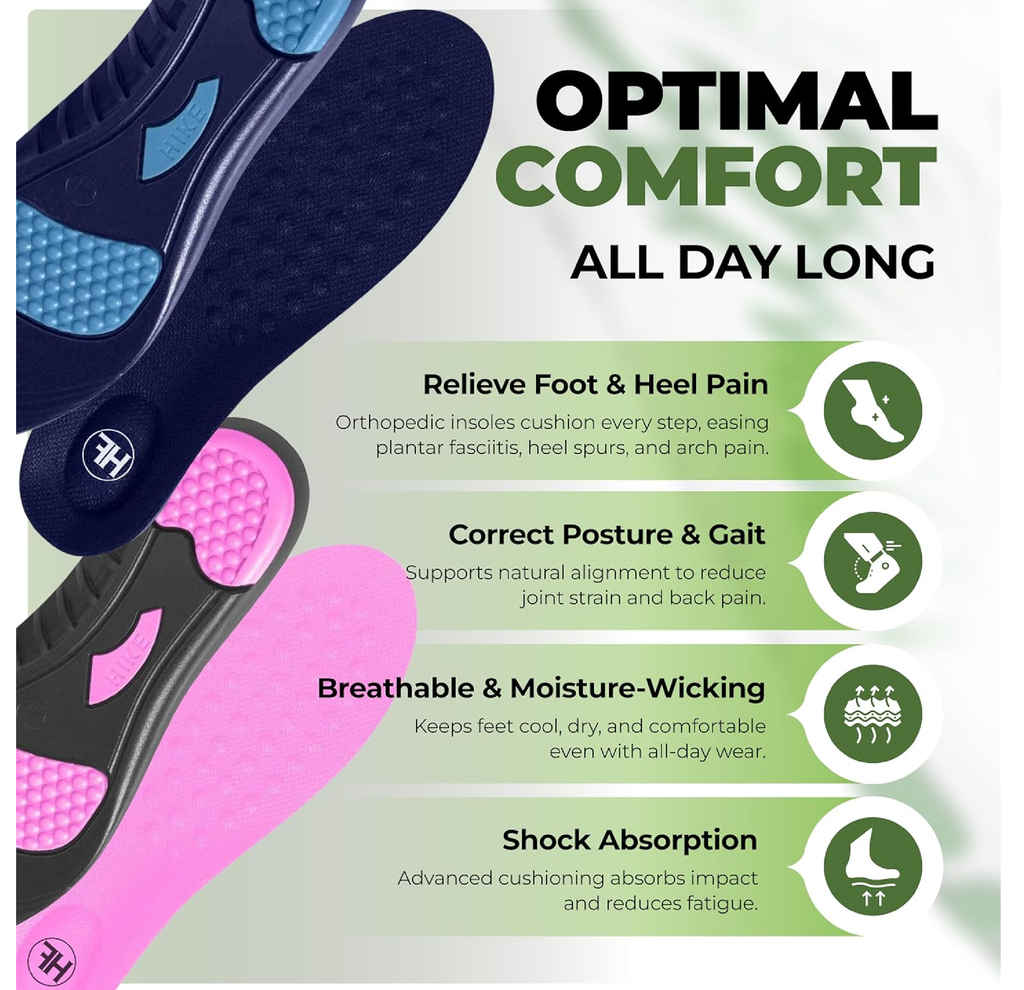 -Pain Relief: Specifically engineered to reduce pain associated with plantar fasciitis, flat feet, and other common foot conditions.