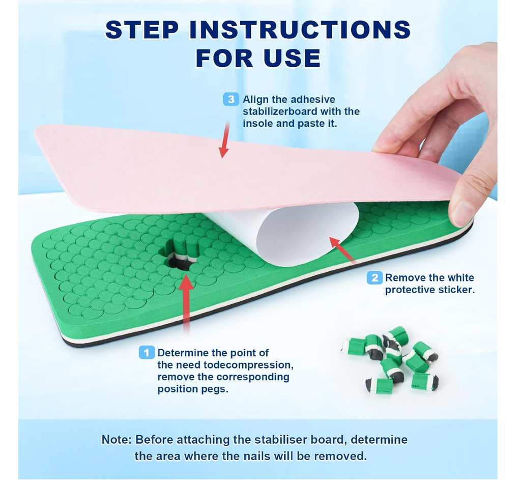 2.Stabilizer Board: Peg-assist insole comes with a peg support board to help maintain the structure of the insole. Low arch suppor provides cushioning and support for low arch feet.This size large Estinko PegAssist insole helps reduce ring edema and edge abrasion.