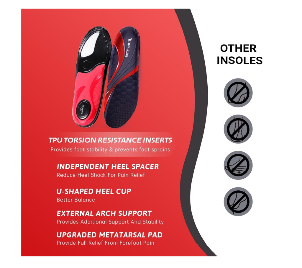 Foot Pain Relief: Effectively corrects pronation, supination, reducing discomfort associated with achilles tendonitis, metatarsal pain, lower back pain, shin splints. Insoles men are designed to provide targeted relief, enhancing your overall feet health