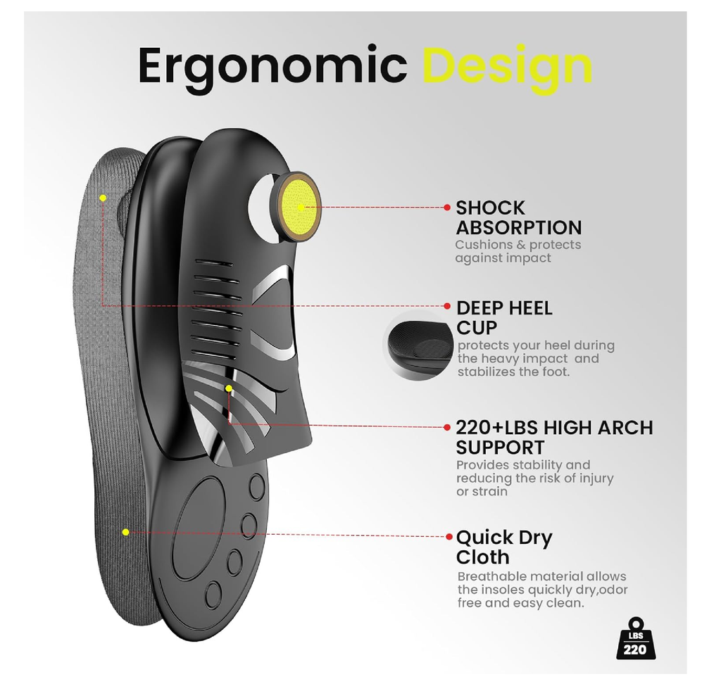 Plantar Fasciitis Insoles: High Arch Support Orthotic Insoles for Men and Women.