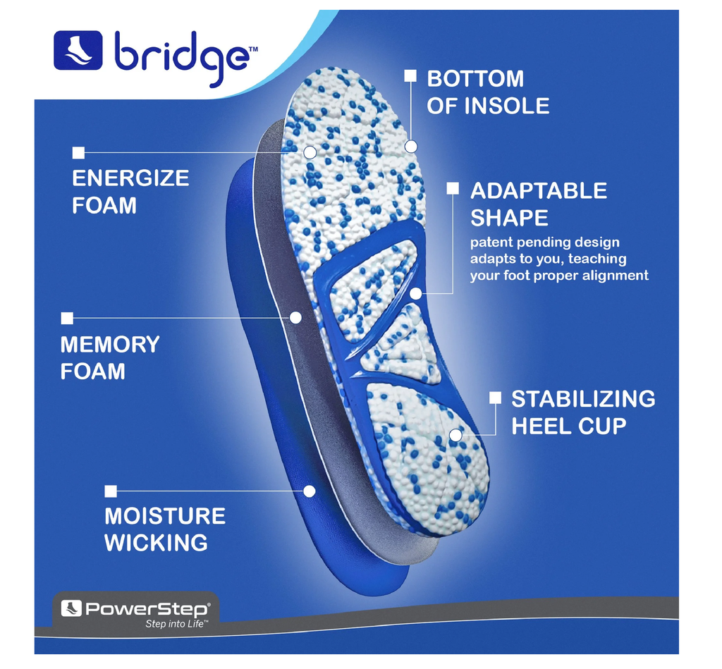 -Trusted and Proven: PowerStep Bridge comfort insoles offers the same PowerStep proven arch shape but in a more innovative, flexible, and supportive frame.