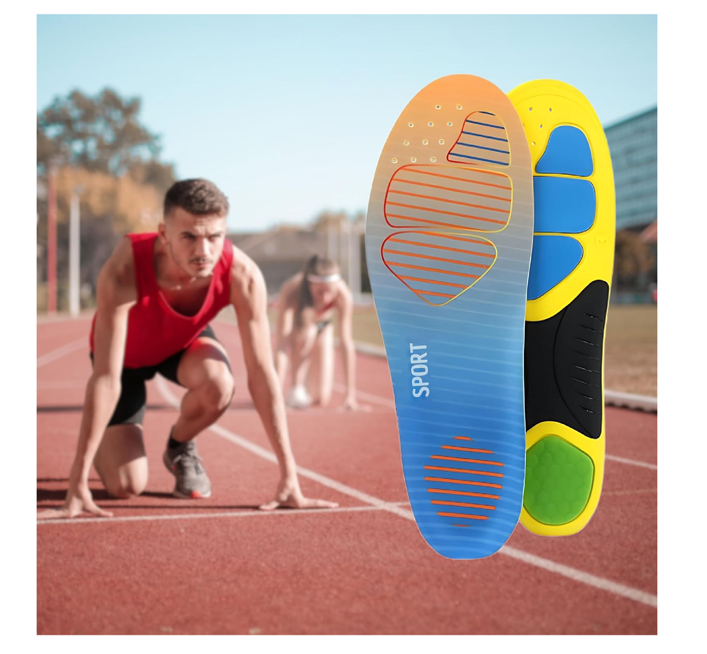 Dynamic PU High-Elastic Gasket for Optimal Support: Our insoles are equipped with a high-elastic PU gasket designed for superior energy absorption and rebound. This advanced feature adapts to your movements, providing targeted support for every stride. Whether you're running marathons, playing soccer, or dominating the court, the PU material reduces stress on your arches and heels, ensuring peak performance with every motion.
