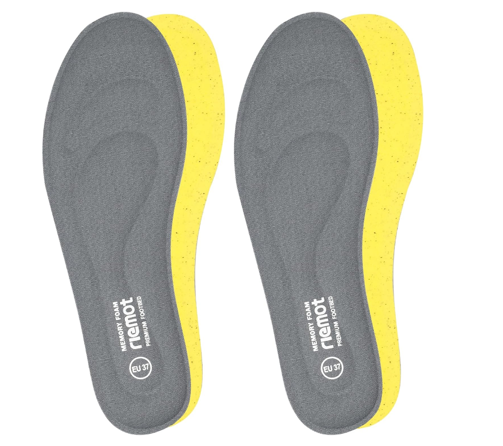 Breathable:riemot women's insoles are made of approximately 8mm-thick elastic memory foam that conforms to the shape of your feet. The breathable surface material effectively wicks away moisture and reduces odor, while embedded activated carbon particles keep your feet dry and fresh all day long