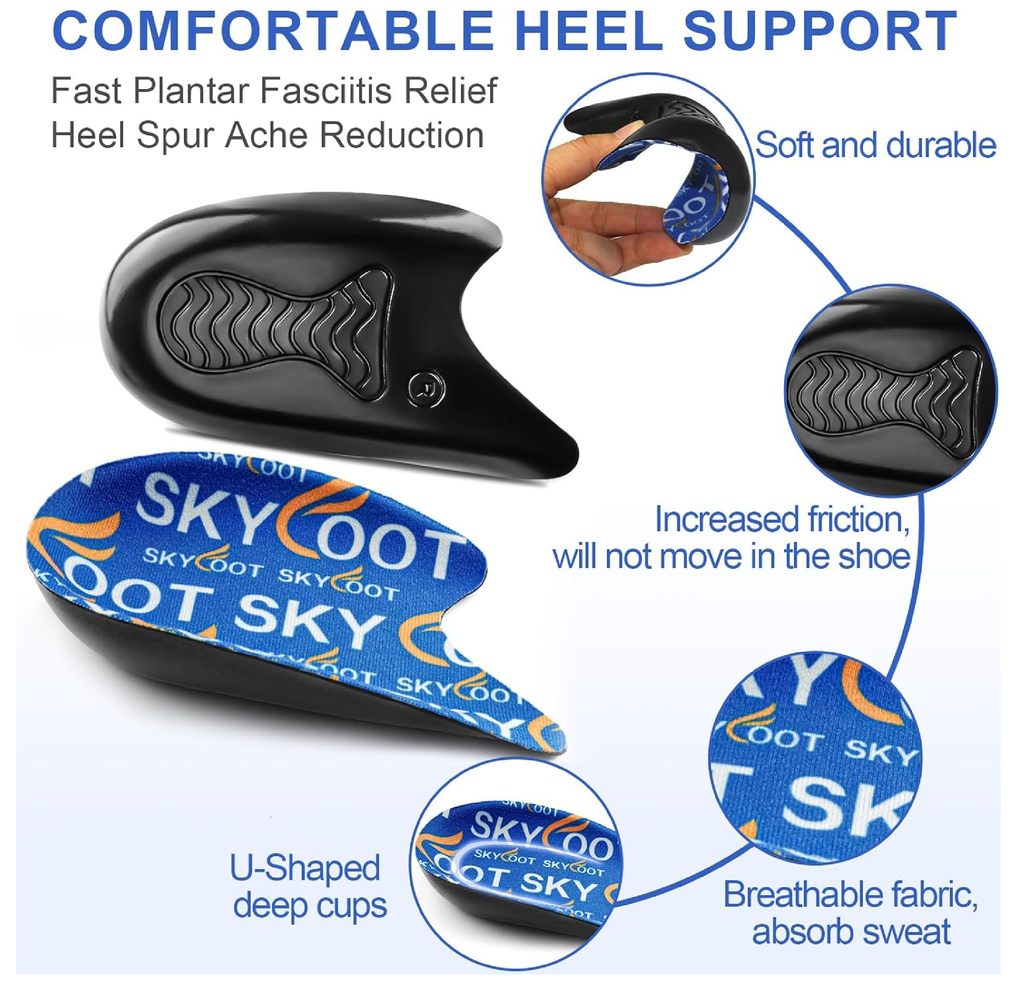 -Heel Pain Saver: Skyfoot heel cushions are designed for people who suffer from discomfort in their heels and want extra cushioning. Relieve pain caused by achilles tendinitis, bone spurs and other conditions where heel support is needed.
