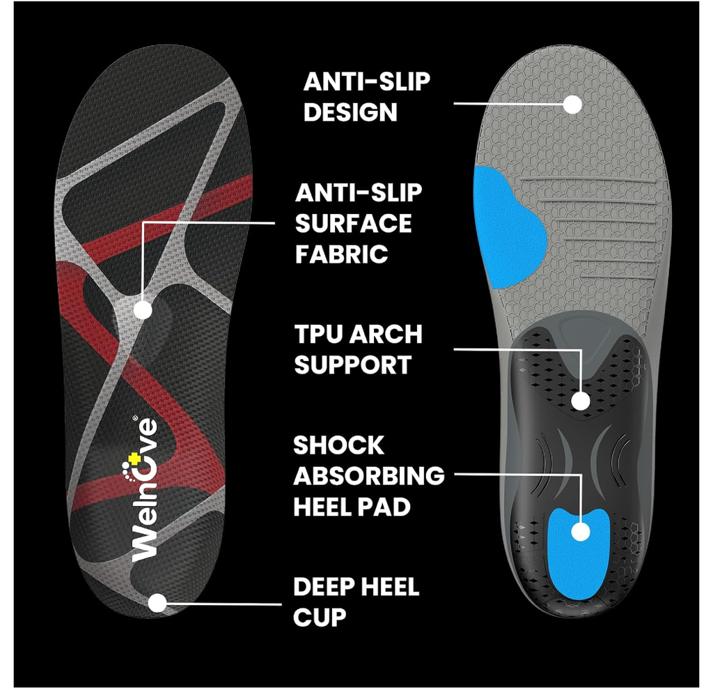 -ADVANCED SHOCK ABSORPTION & ENERGY BOOST - Experience the power of rebound! Engineered with innovative energy-return technology, these insoles significantly reduce joint stress by absorbing harmful shock. Feel less impact, enjoy a responsive bounce with each stride, and unlock more endurance to push harder and longer without the drain.