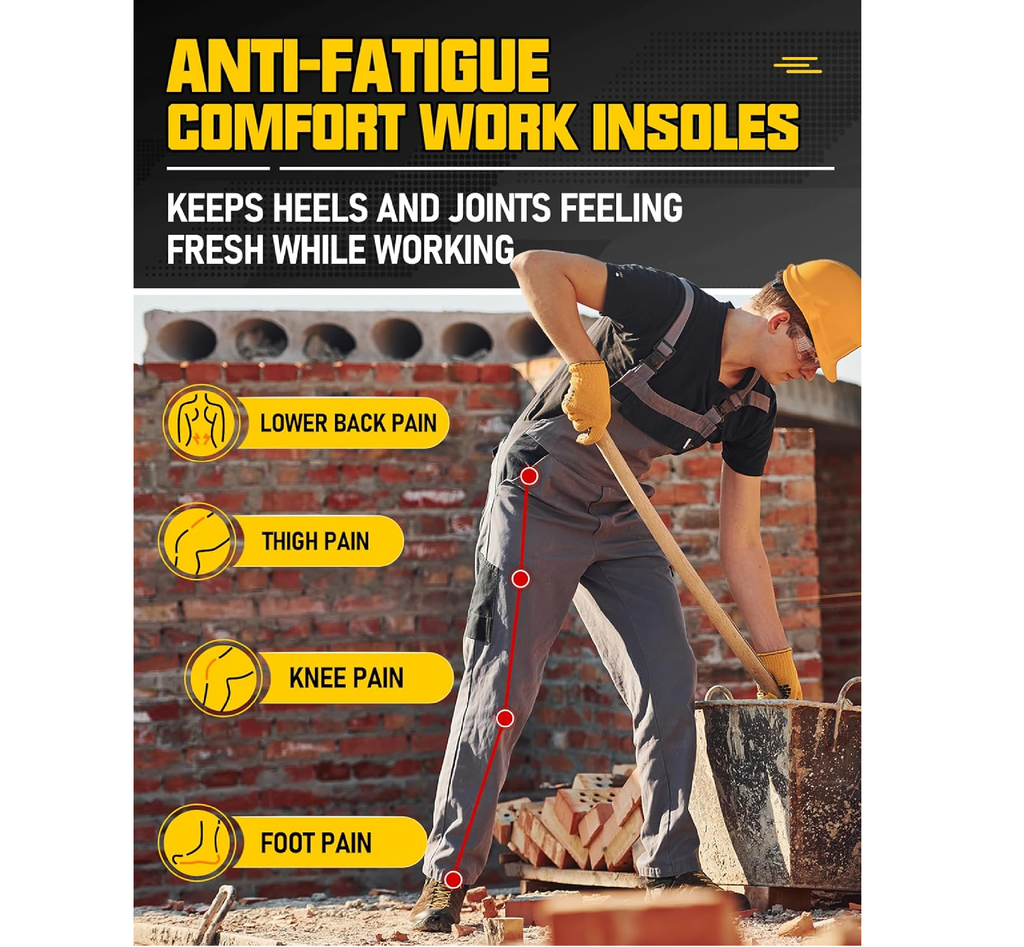 Work Insoles · Relieve Foot Fatigue.In any daily work, a pair of comfortable and stylish insoles is essential to ease tired feet. They absorb up to 80% of impact, alleviating foot fatigue caused by long hours of work (such as prolonged walking or standing), ensuring all-day comfort. You’ll find them easy to adapt to, making them an indispensable part of your daily work life.