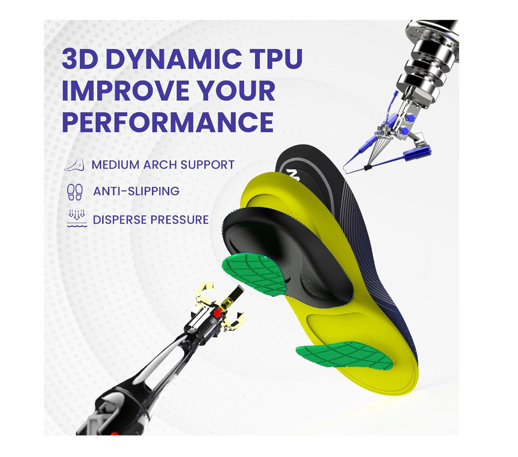Upgrade Design - Orthotic work insoles have the unique combination of a PU foam cushioning layer, 3D dynamic TPU arch support layer, deep U-cup heel, and shock-absorbing GEL cushioning pads on the heel and ball-of-foot. That keeps your feet in the correct position, adjusting the plantar force points, providing stability and improving lower limb force lines to reduce the impact on your muscles and joins.