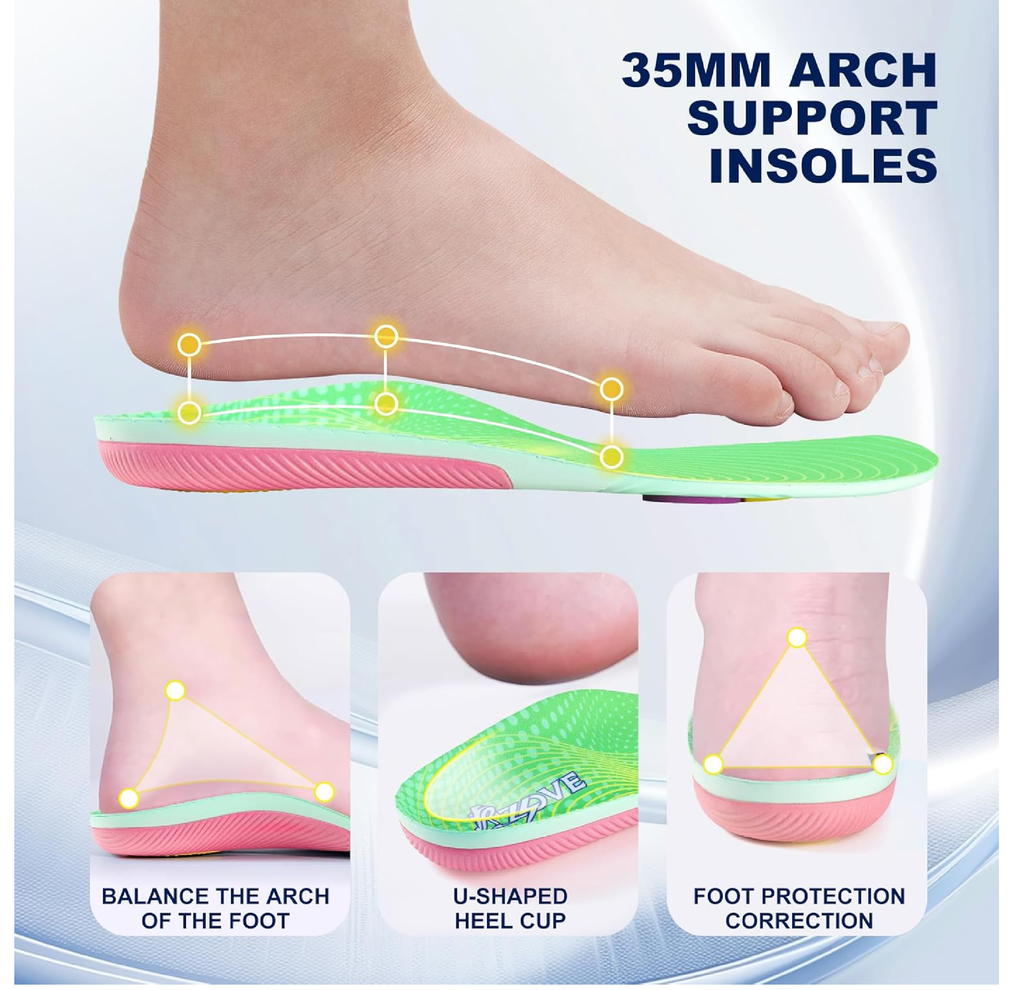 -Ergonomic arch support: Performance arch support that trains your feet to move properly whether you have flat feet needing lift or high arch support inserts for women and men craving support, while shielding against impact stress from running, working, or daily activities.