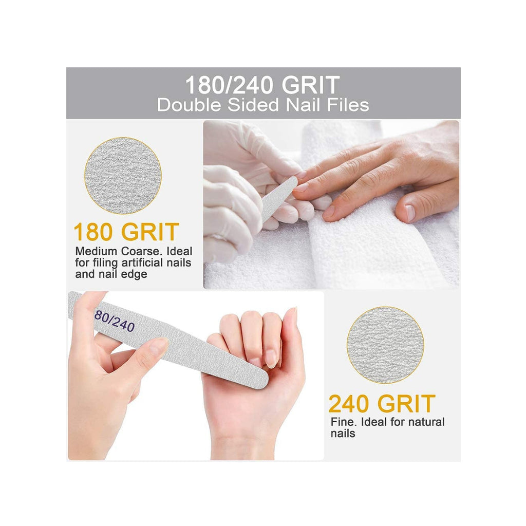 Final touches on poly nail extension gel acrylic nails and natural nails. Removing small bumps, ridges or discolorations Shaping the free edge of natural nails. The high-quality 180/240 grit emery board nail files are perfect solution to maintain beautiful gel nails, natural nails, manicure & pedicure! Whether ur nails are chipped, bristled, or require daily maintenance, they are surely the best helpers, also terrific gifts for girls.