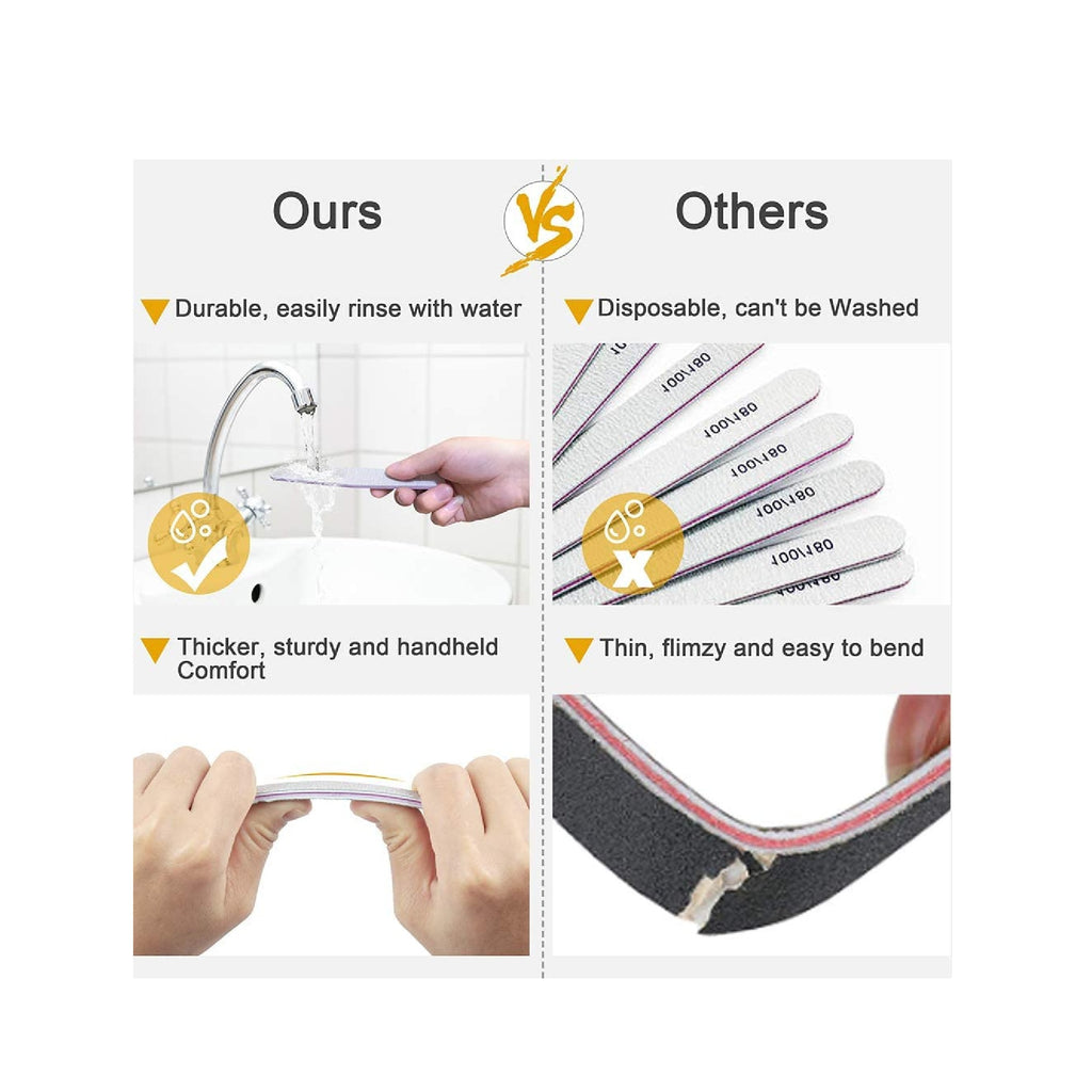 Professional 12pcs Nail Files, Emery Board Nail File 80/100/180/240 Grit Washable Fingernail Files Nail Filer Emery Board Nail Files Using Guide: