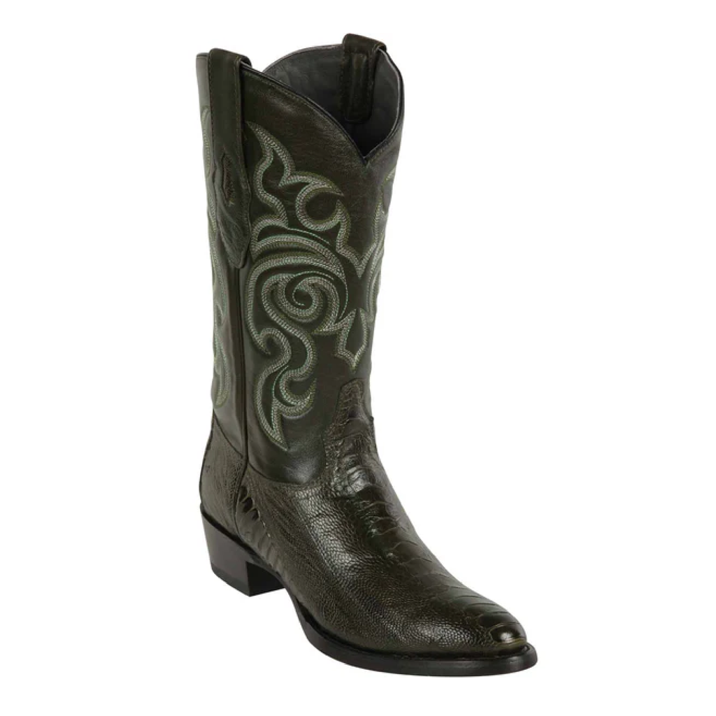 Los Altos Boots Mens #990545 J Toe | Genuine Ostrich Leg Boots | Color Olive Green