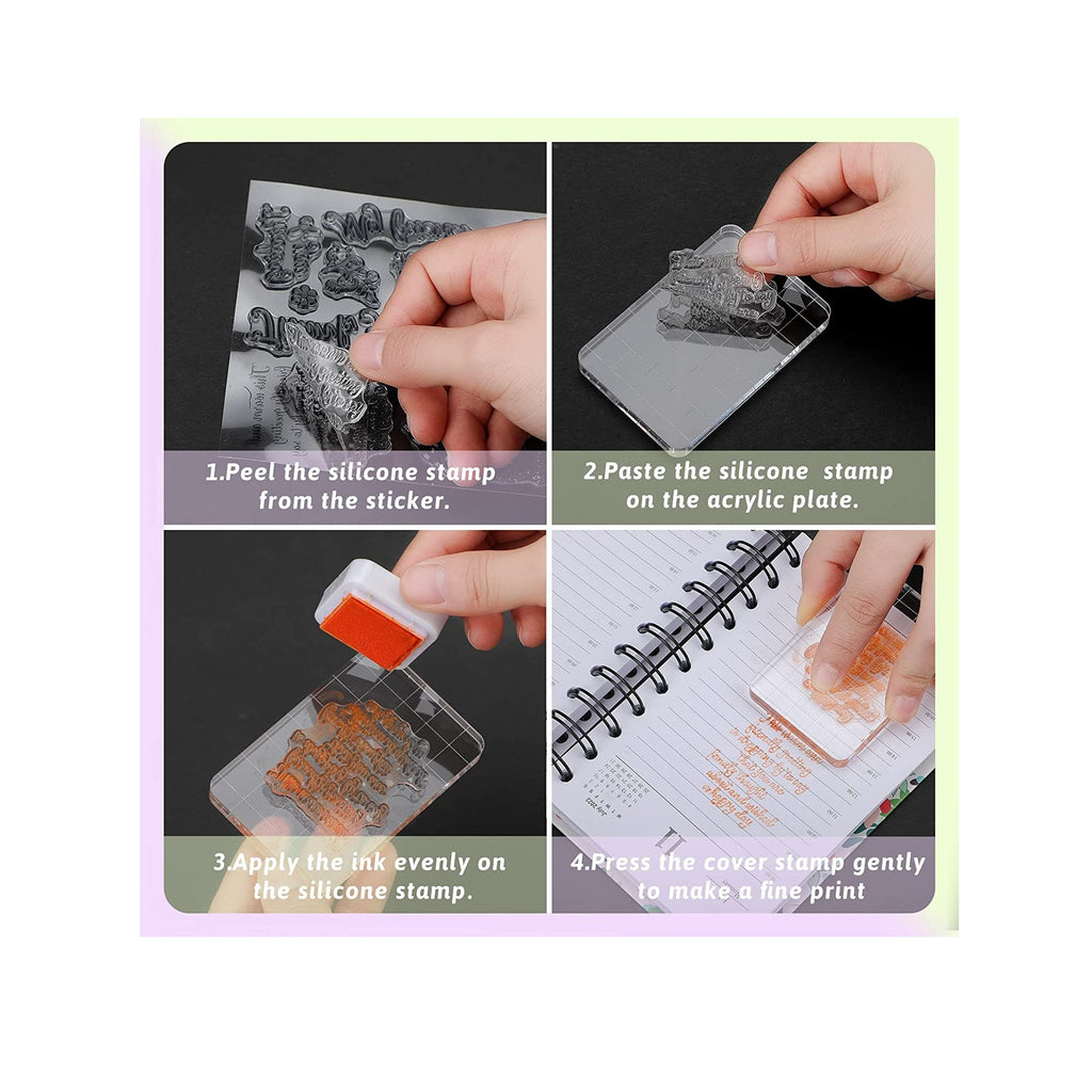 -Ideal and Useful Combination Set: the package contains 4 sheets of friendly phrases stamps and 3 acrylic stamp blocks of different sizes with grid lines, fresh and novel, the practical combination will draw more attention when opening the package, enough to meet your decorative or craft needs