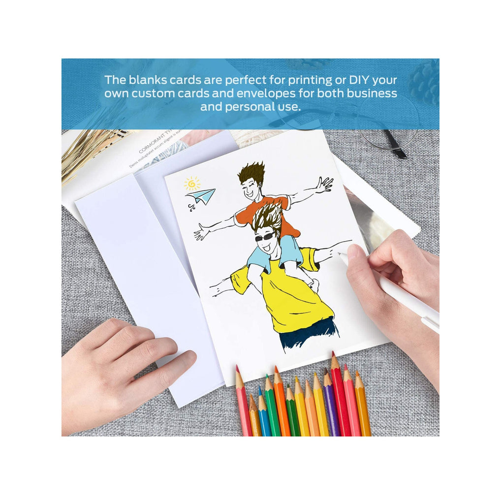 -Professional Quality: Envelopes and cards are made with natural white paper, designed to give each envelope and card a sleeker and more elegant feel. These cards are made of heavyweight strong cardstock. Each card is pre-scored and made of heavy weight 300 GSM cardstock (110lb) that feels thick and sturdy. Envelopes are 120 GSM weight, no see-through worries, protect your information. 100% acid-free and archival safe and are perfect for embossing, calligraphy, drawing and stamping.