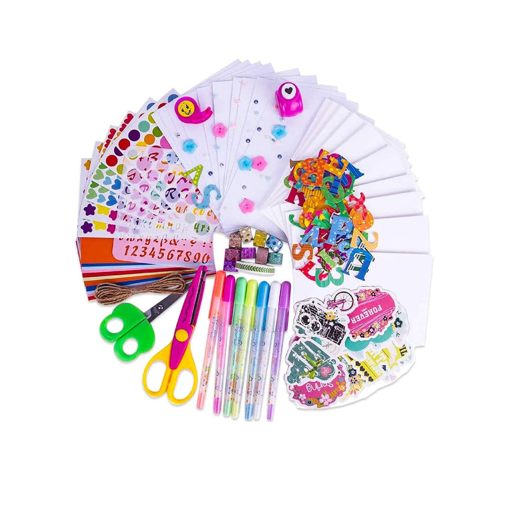 -Package including:10 pcs blank envelope,25 pcs ephemeras,3 washi tape,1 sticker tape,2 kits colorful letters,some plastic buttons,1 meter lace ribbon,1 scissors,1 edge wave scissors,6 sheets stickers,1 paper punch,1 pack punch papers,1 drawing board -Notice: The scissors color comes in RANDOM -Appication:For scrapbooking/decorate hand crafts -Feature:All items packed in a gift box,perfect for scrapbook,crafting and handmade project and card making. -Gift for:Handwork lovers as a anniversary gift,personalized gift,valentines day gift,mothers day gifts,baby shower gift,birthday gift and so on.
