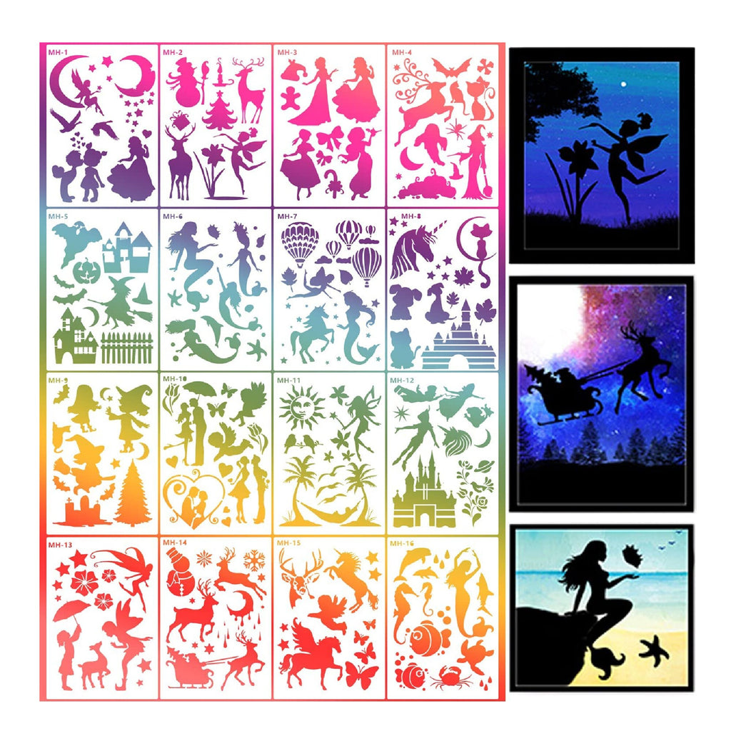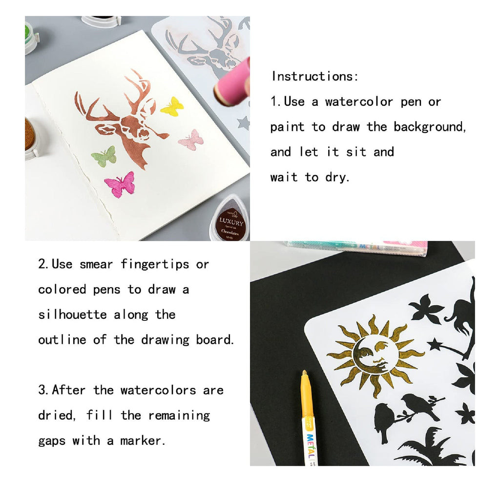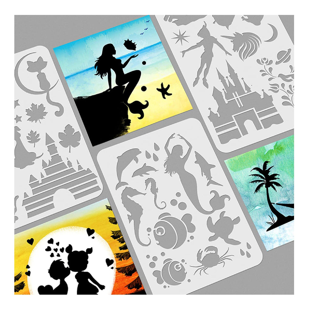 These painting templates are suitable for most painting tools, such as crayons, watercolors, spray paint, etc.-Robust and Reusable. Easy to clean, simply clean the fantasy stencil with soap and water after use.-Smooth surface and edges. All fantasy templates are designed with rounded corners.-Make the stencils smoother.