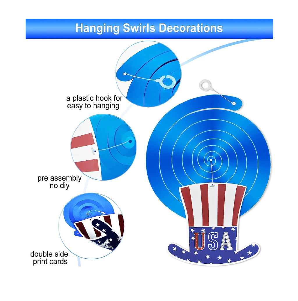 - Quality Material : Independence day hanging swirl made of safe and durable PVC and durable cardboard. They're eye-catching in both light and shadow, easy enough to hang and can be reusable for several years. We provide high-quality services. If you are not satisfied with the products and we provide refund or replacement