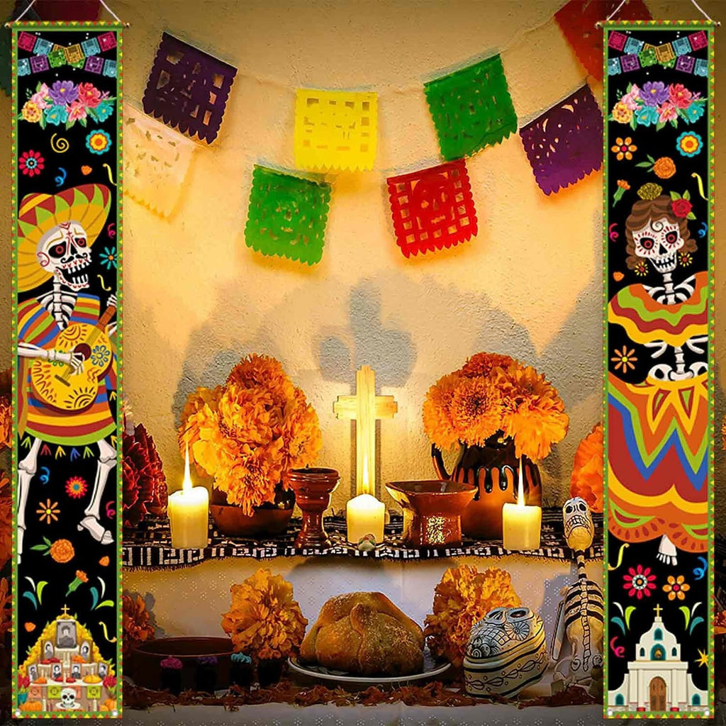 Allenjoy Mexican Day of the Dead Porch Signs Hanging Wall Door Banner