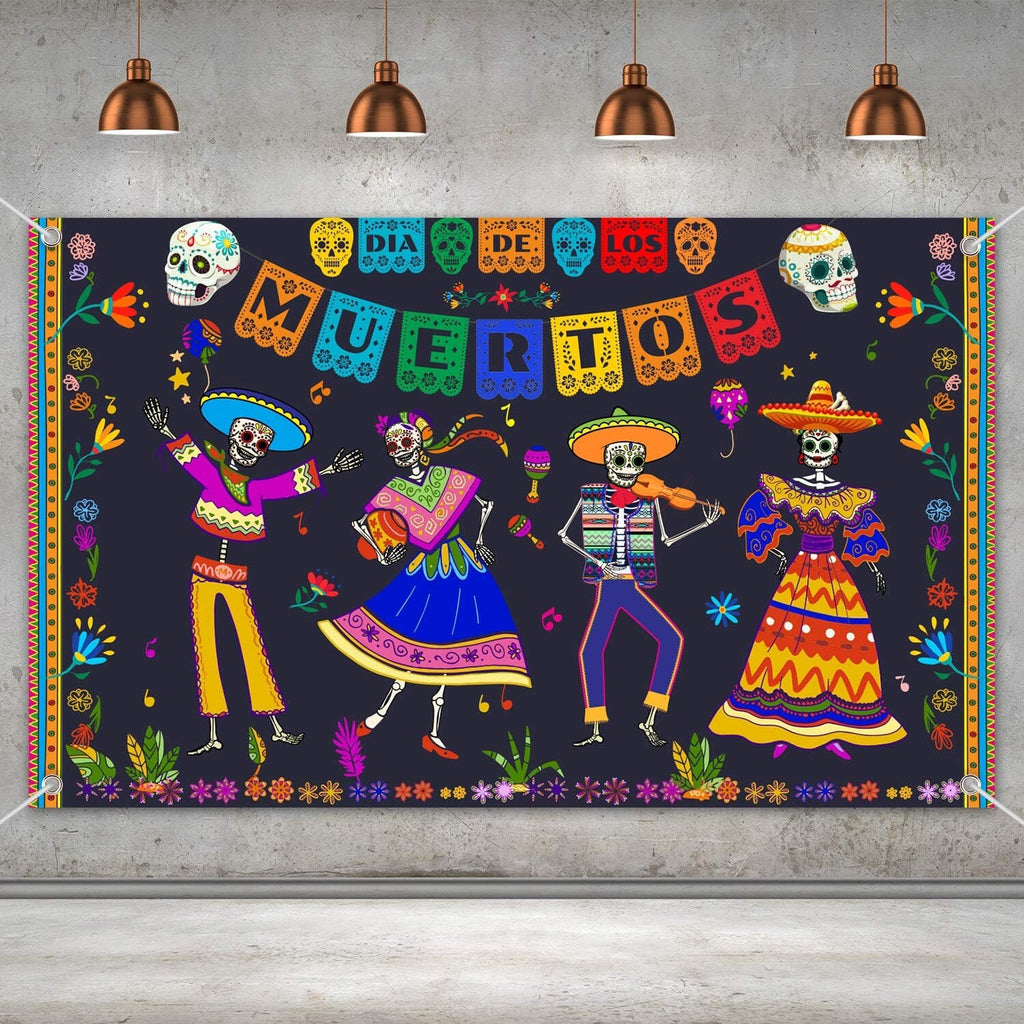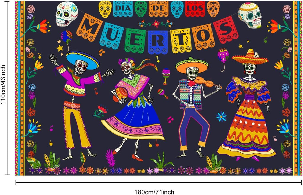 Packing includes: a piece of day of dead Banner , length 6.1 x3.6 feet come with a 13ft white string; Big enough to suitable any theme parties, and perfectly satisfy all the photo requirements