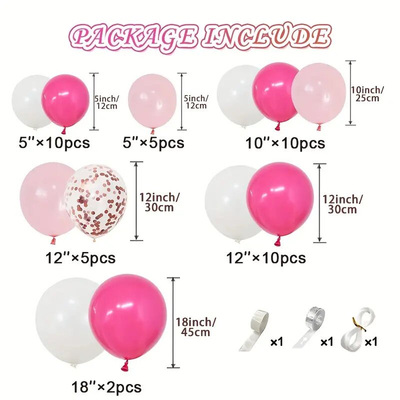 -Set, Hot Pink And White Balloons Garland Arch Kit Rose Red And Light Pink Rose Gold Confetti Balloons For Barbie Princess Theme Baby Shower Graduation Party Supplies Wedding Birthday Party Decorations