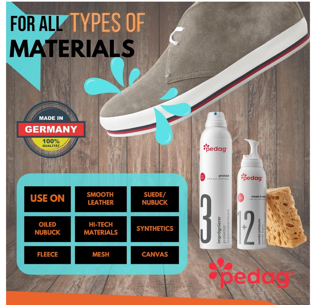 -Quick to DryShoe Protector Spray -The Gold standard shoe protector spray. Trusted by hikers, travelers, and urban commuters. Pedag's shoe repellent spray shields against water and stains, Great for suede accessories and gear including backpacks. Pedag's shoe stain protector spray has a long-lasting moisture barrier. No residue, no stiffness—just reliable water repellent spray for fabric. Have white shoes? Use Pedag's white shoe protector spray to keep the white.! Use this Top sealer on your tent when you camp.
