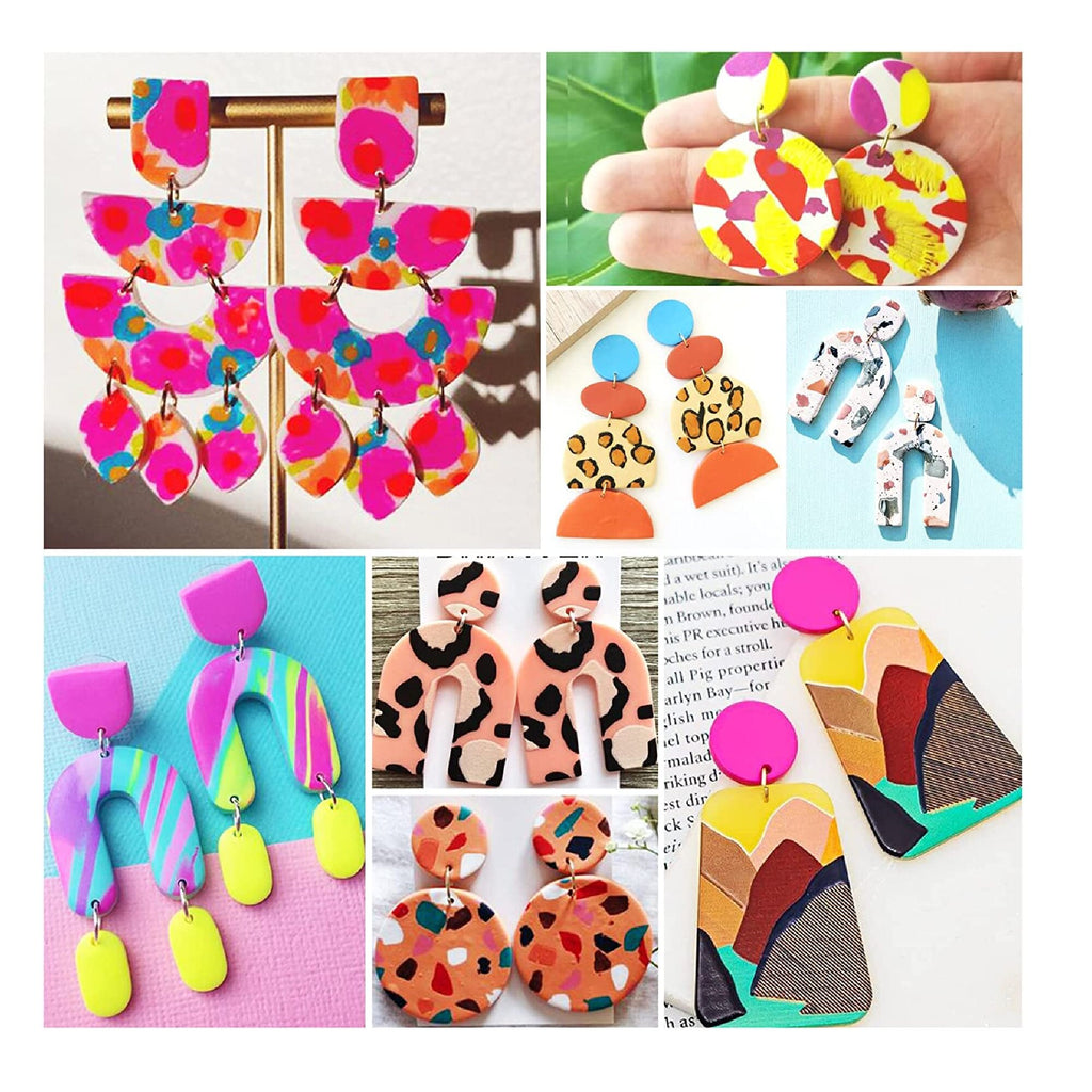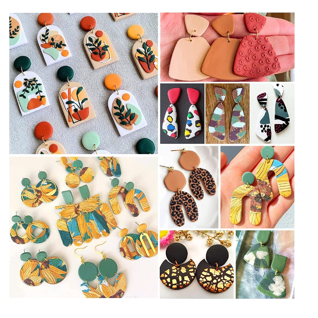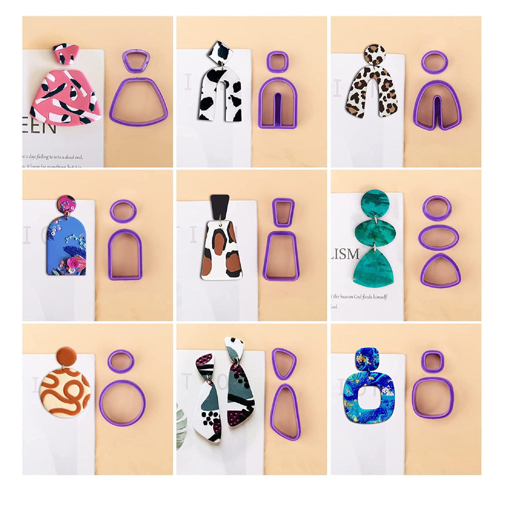 -Polymer Clay Cutters Set of 18 Polymer Clay Jewelry Clay Cutters, Plastic Clay Earring Cutters with Earring Cards for Polymer Clay Jewelry Making.-Material: PP plastic.-Purple-Packed Included: Includes 18 plastic polymer clay earring cutters, 20 earring hooks and 30 jump rings in gold and silver colors, 30 earring back pieces, 10 earring cards and self-sealing bags.It is a perfect option to use or sell your creations!-Easy to use for beginners.-Tips: