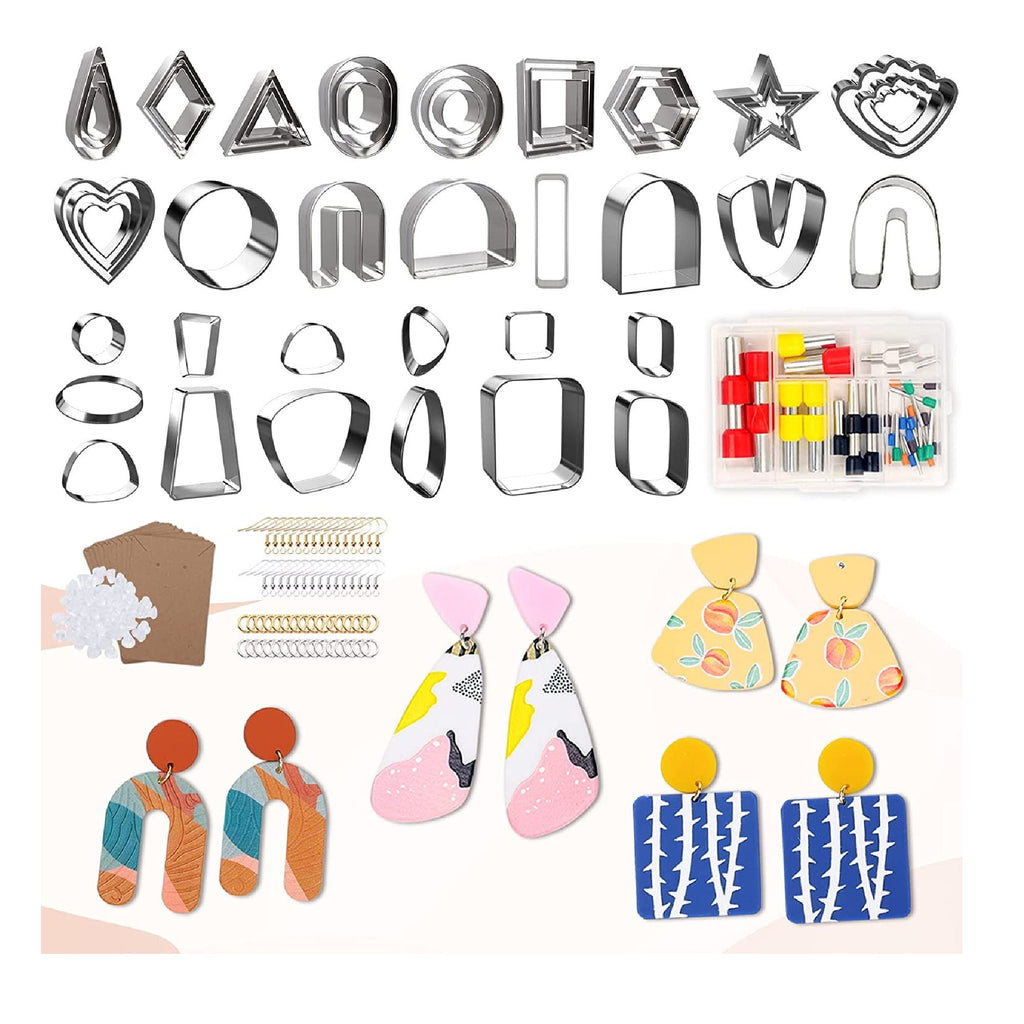 -Rich set meets all needs: Caydo polymer clay cutter set includes 50 shaped clay cutters, 40 circle shaped cutters, 30 gold and silver earring hooks, 30 earring backs, 30 earring rings in gold and silver, 15 earring cards, meets all your needs for clay earrings.