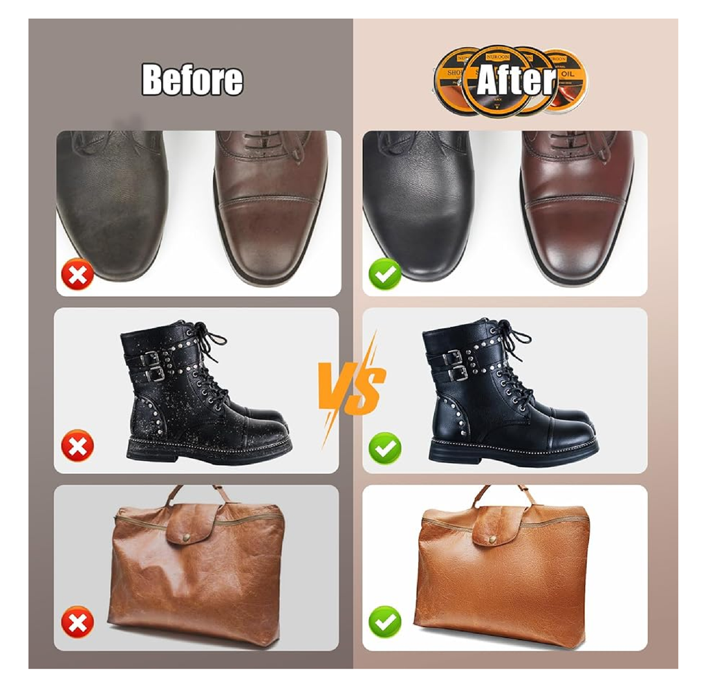 -RICH SHOE POLISH KIT: Leather care kit includes a leather boot conditioner, shoe polish black, brown shoe polisha nd neutral shoe polish. The mink oil nourishes dry or cracked leather while preventing issues like fading and cracking. 3-Color leather shoe polish can repair leather shoes of most colors, effectively restoring the color of worn shoes. Shoe shine kit for men women leather shoes, boots, bags, clothes or leather sofas, these leather shoe cleaner making leather products quick shine.