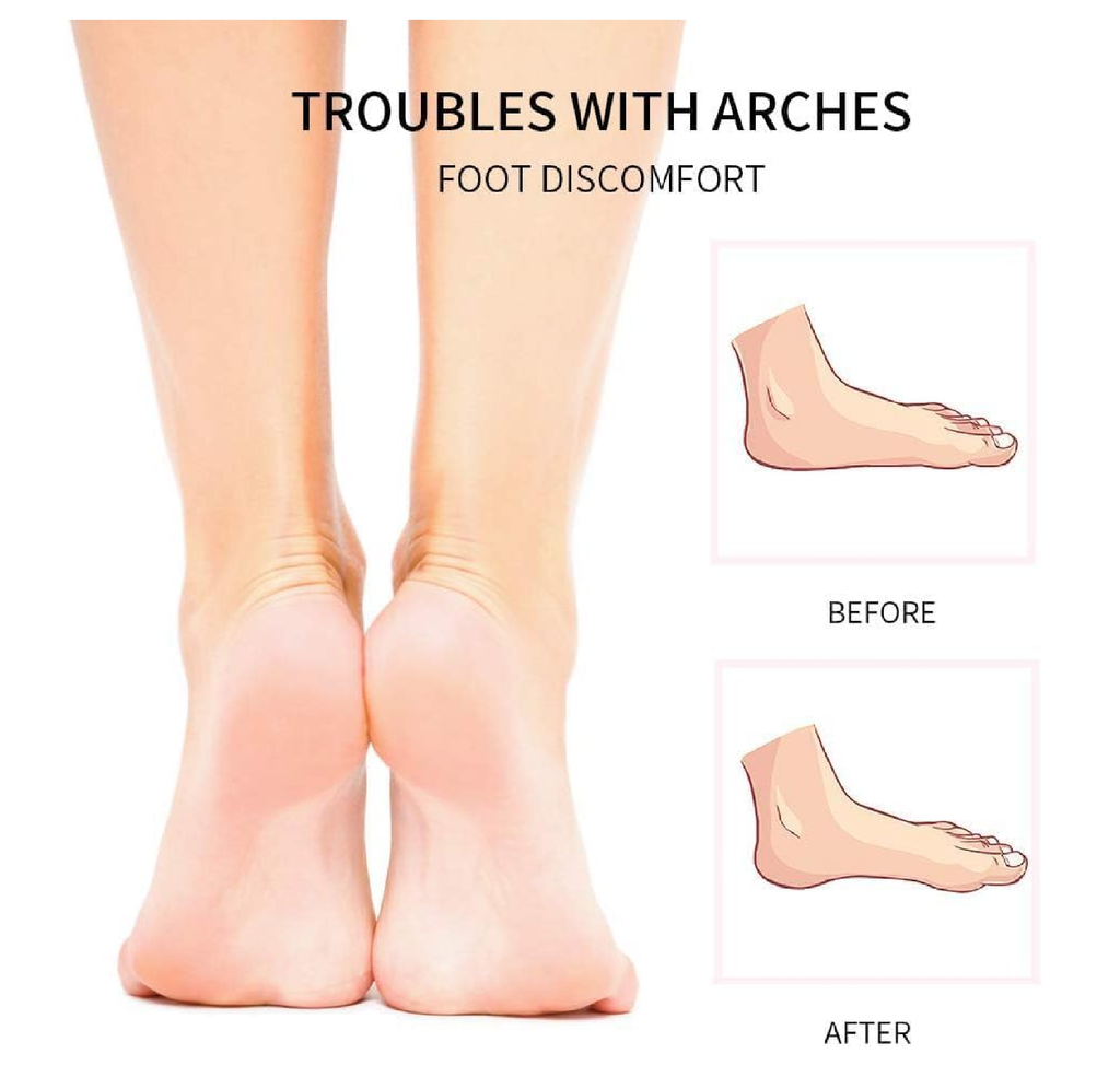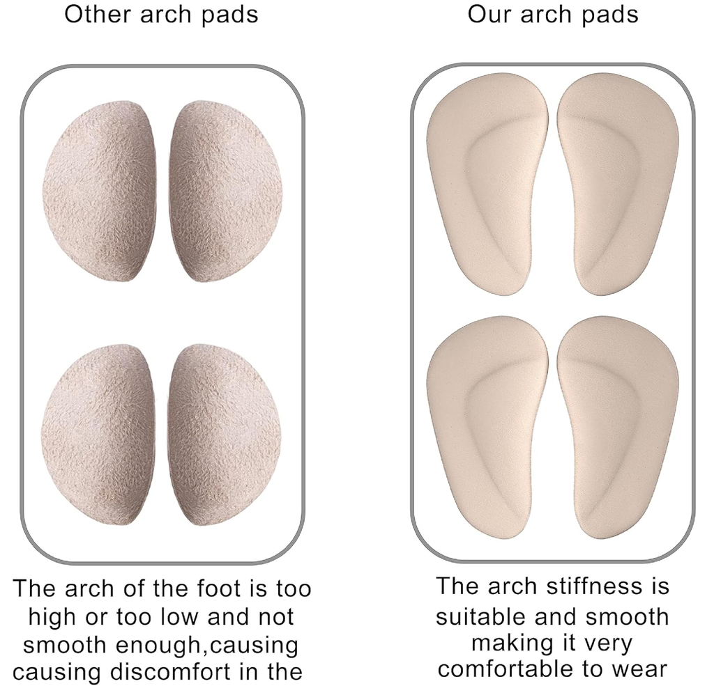 -SELF-ADHESIVE ARCH SUPPORT INSOLES: Our arch support insoles feature a soft silicone gel material that not only provides excellent cushioning but also boasts strong adhesion to keep them securely in place during activities such as running, walking, or prolonged standing. By reducing pressure on the arch, these insoles effectively alleviate arch pain and offer added comfort.