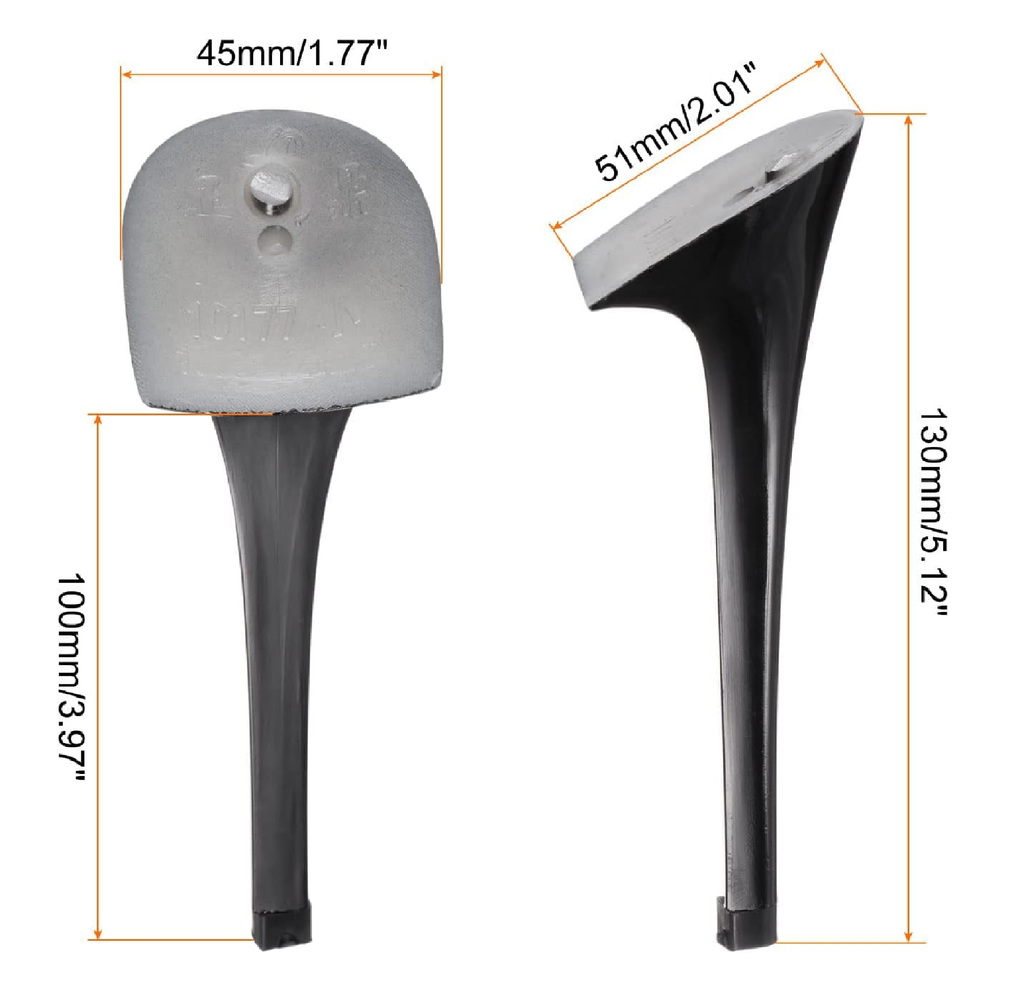 -Size - Color: Black; Shoe Seat Width: 45mm/1.77"; Shoe Seat Length: 51mm/2.01"; Heel Height: 130mm/5.12"; Front Heel Height: 100mm/3.94"