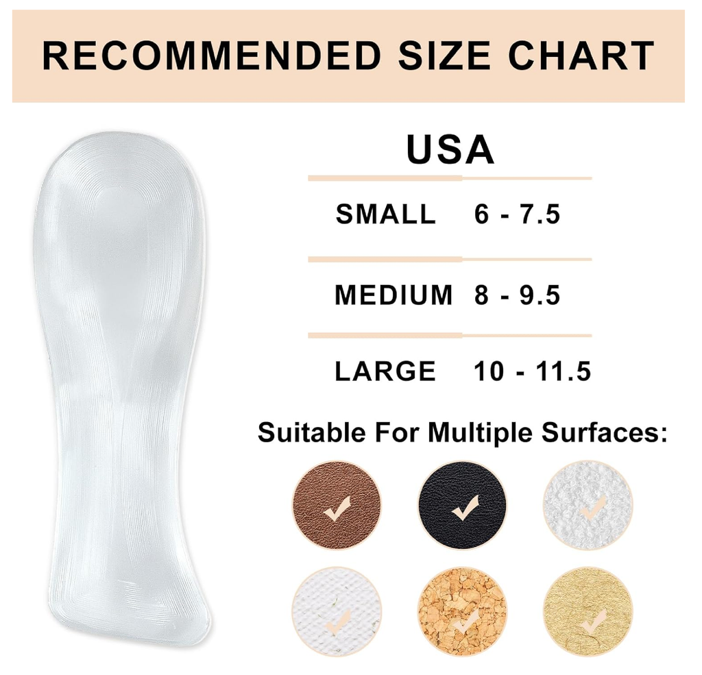 -Before applying, peel off the plastic film on the bottom and attach it to the shoe, suitable for most high heels.