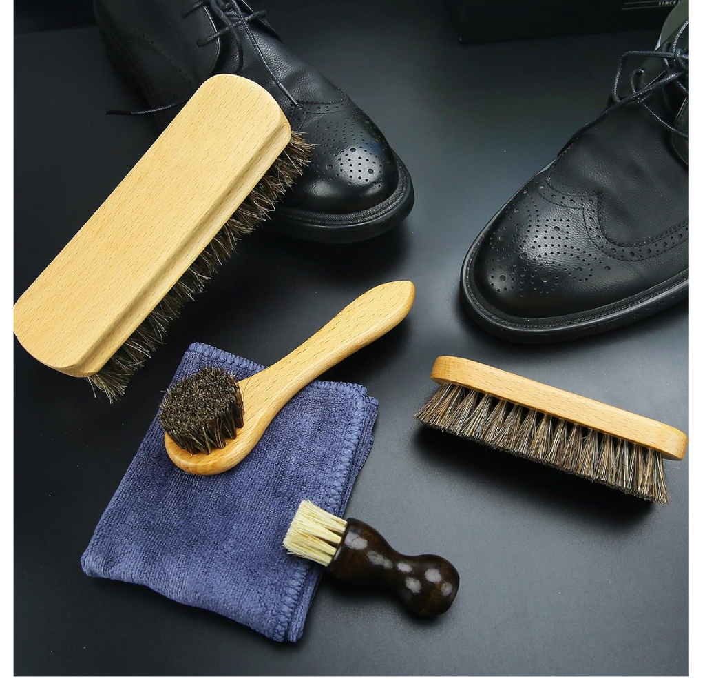 Scratch-Free Horse Hair Brush for Leather: The natural horsehair shoe brushes glide smoothly and won't scratch the leather, providing quality care for your shoes.