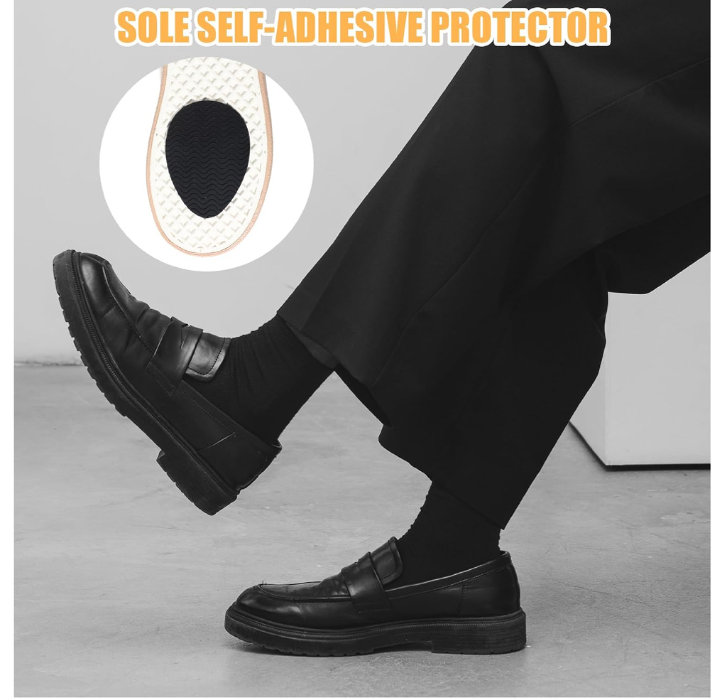 -Easy to Use: These adhesive sole protector pad are easy to apply, just simply peel off the protective film, clean and dry your shoe soles and press the pads firmly in place, Can be easily trimmed with scissors to perfectly fit any shoe size or shape.