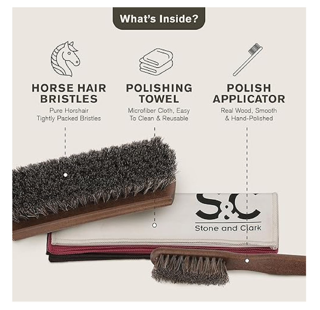 -Premium Quality Brushes for Superior Care Crafted with beech wood handles and genuine horsehair bristles, the included brushes are gentle on your leather shoes yet tough enough to deliver a polished finish. Ideal for all types of leather footwear, from formal dress shoes to durable boots.