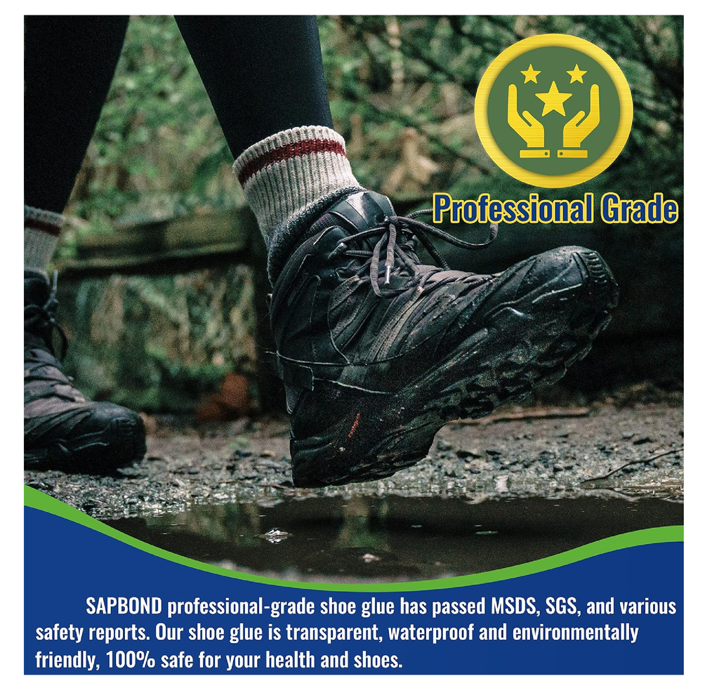 -Safe and Non-toxic: SAPBOND professional-grade shoe glue, exclusive upgraded formula, has passed MSDS, SGS and various safety reports. Our shoe glue is transparent, waterproof and environmentally friendly, 100% safe for your health and shoes.