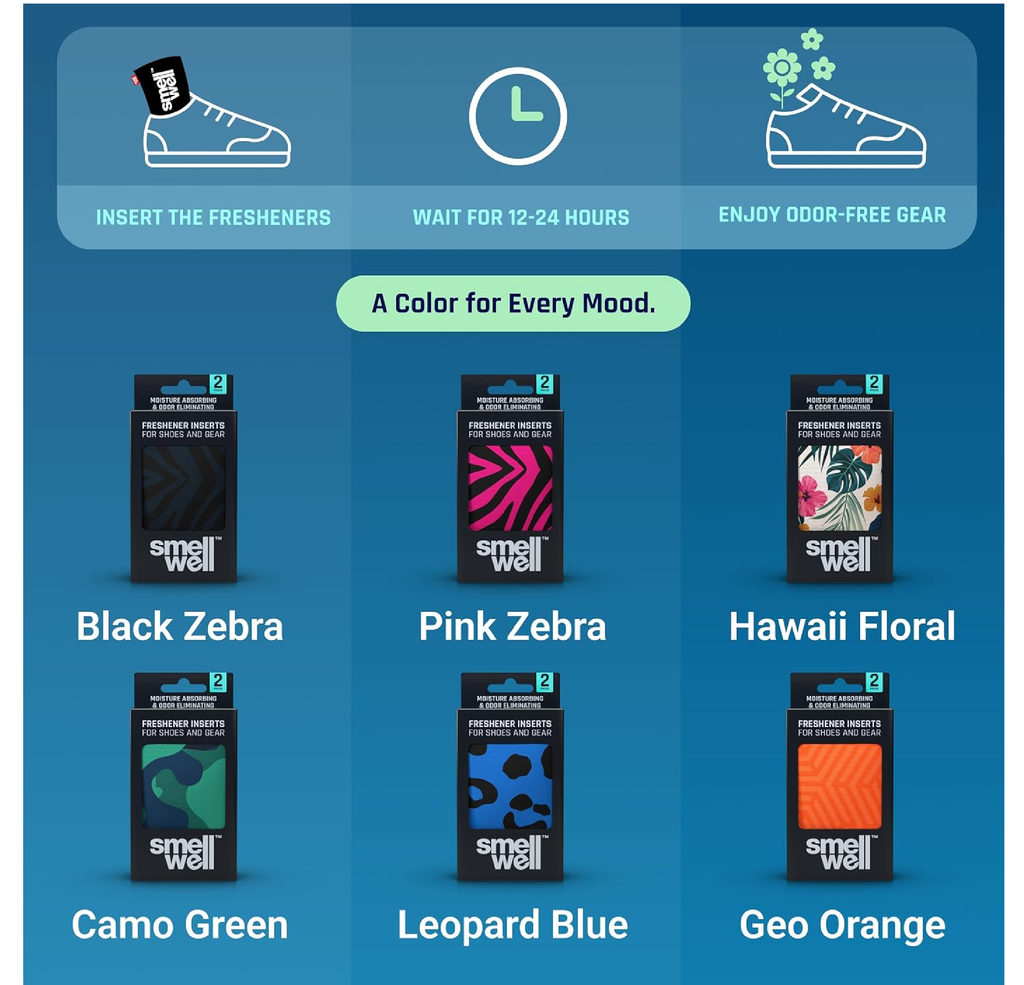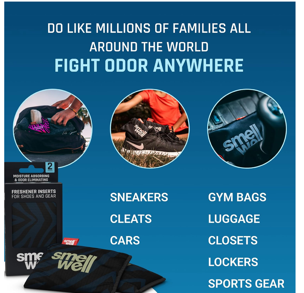 SmellWell - Scented Shoe Deodorizer Inserts - Odor Eliminators - Activated Bamboo Charcoal + Minerals